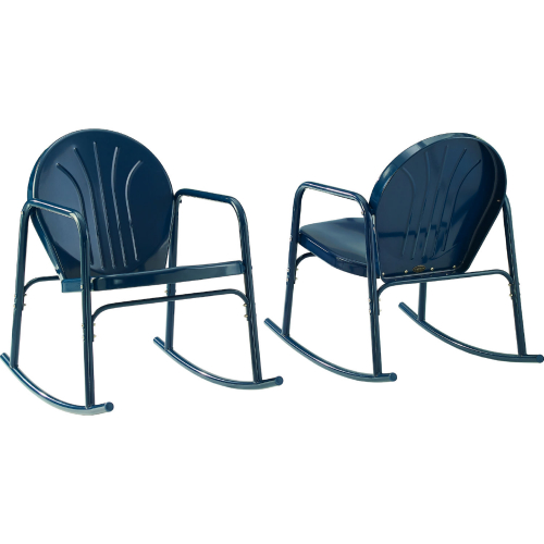 Crosley CO1013-NV Griffith 2 Piece Outdoor Rocking Chair Set Gloss Navy Blue Steel