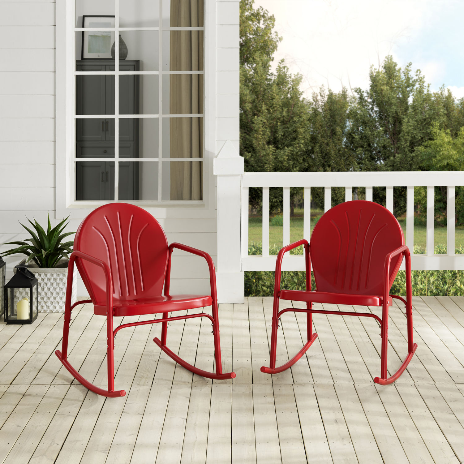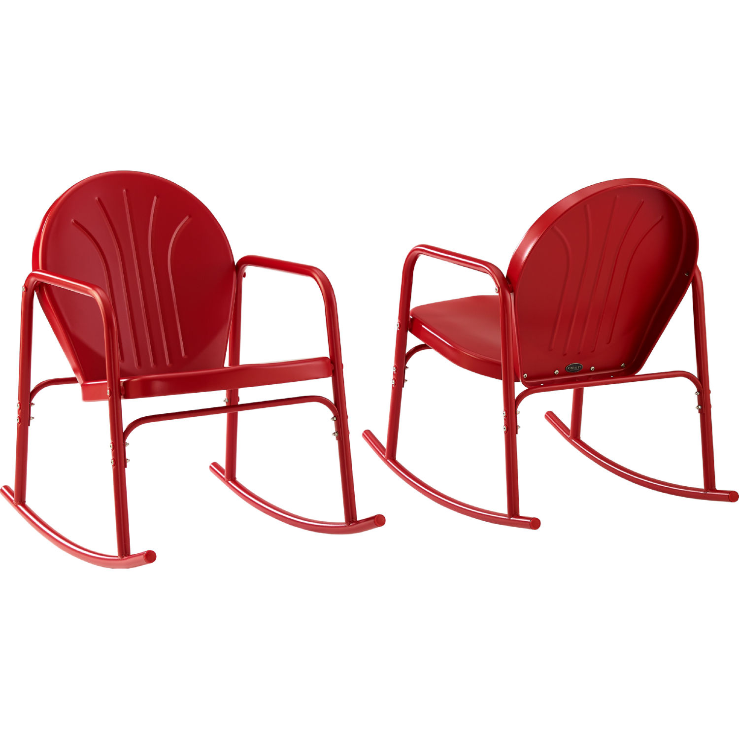Crosley CO1013-RE Griffith 2 Piece Outdoor Rocking Chair Set Gloss Bright Red Steel