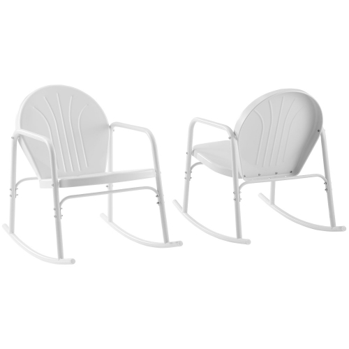 Crosley CO1013-WH Griffith 2 Piece Outdoor Rocking Chair Set Gloss White Steel