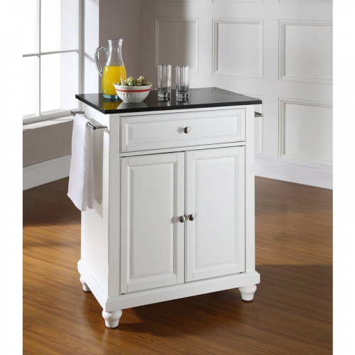 Crosley KF30024DWH Cuisine Cambridge 28" Kitchen Island White Finish Solid Black Granite Top