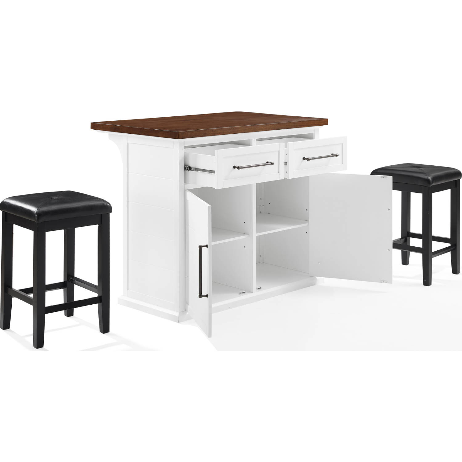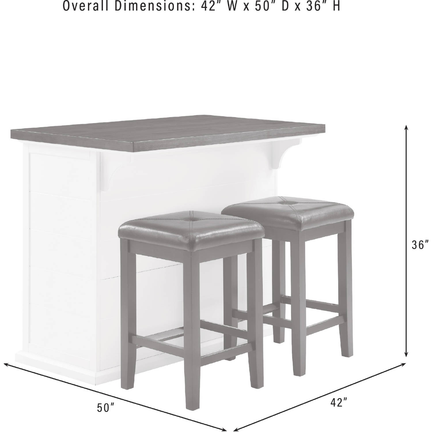 • Set Includes: Kitchen Island & 2 Counter Height Stools
