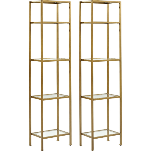 Crosley KF6005GL Aimee Etagere Bookcase Gold Steel Glass (Set of 2)