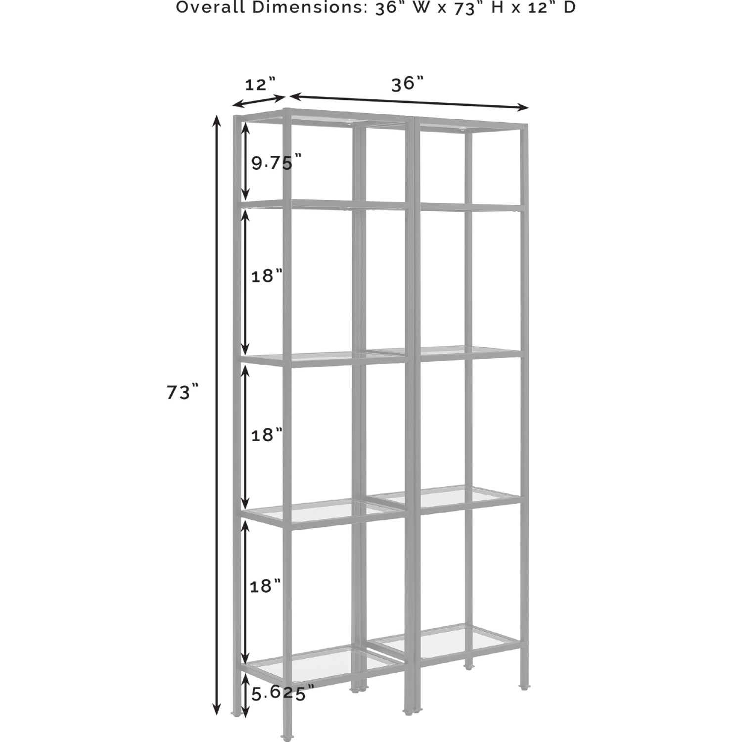 Dimensions: 12"W x 36"D x 73"H