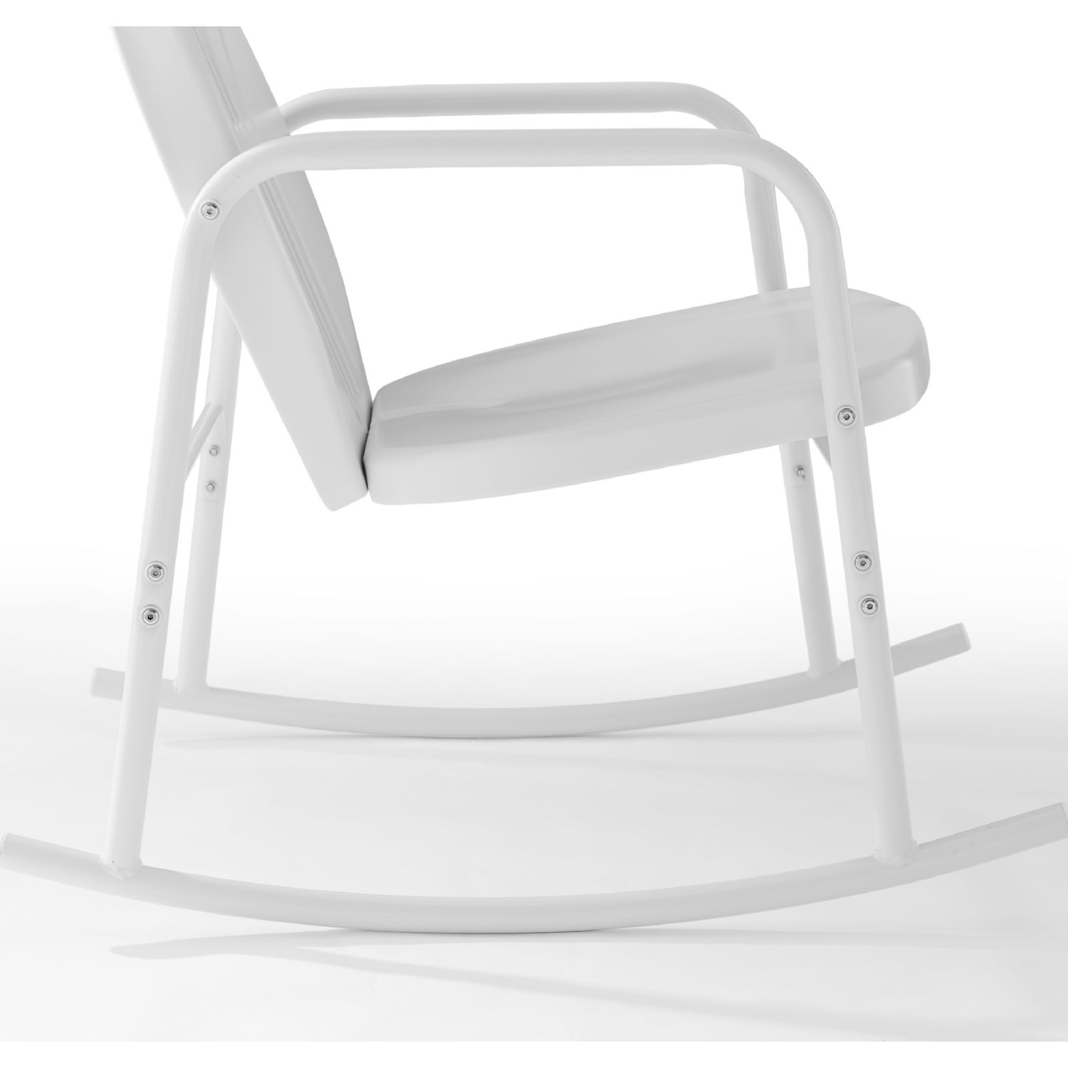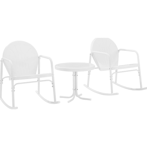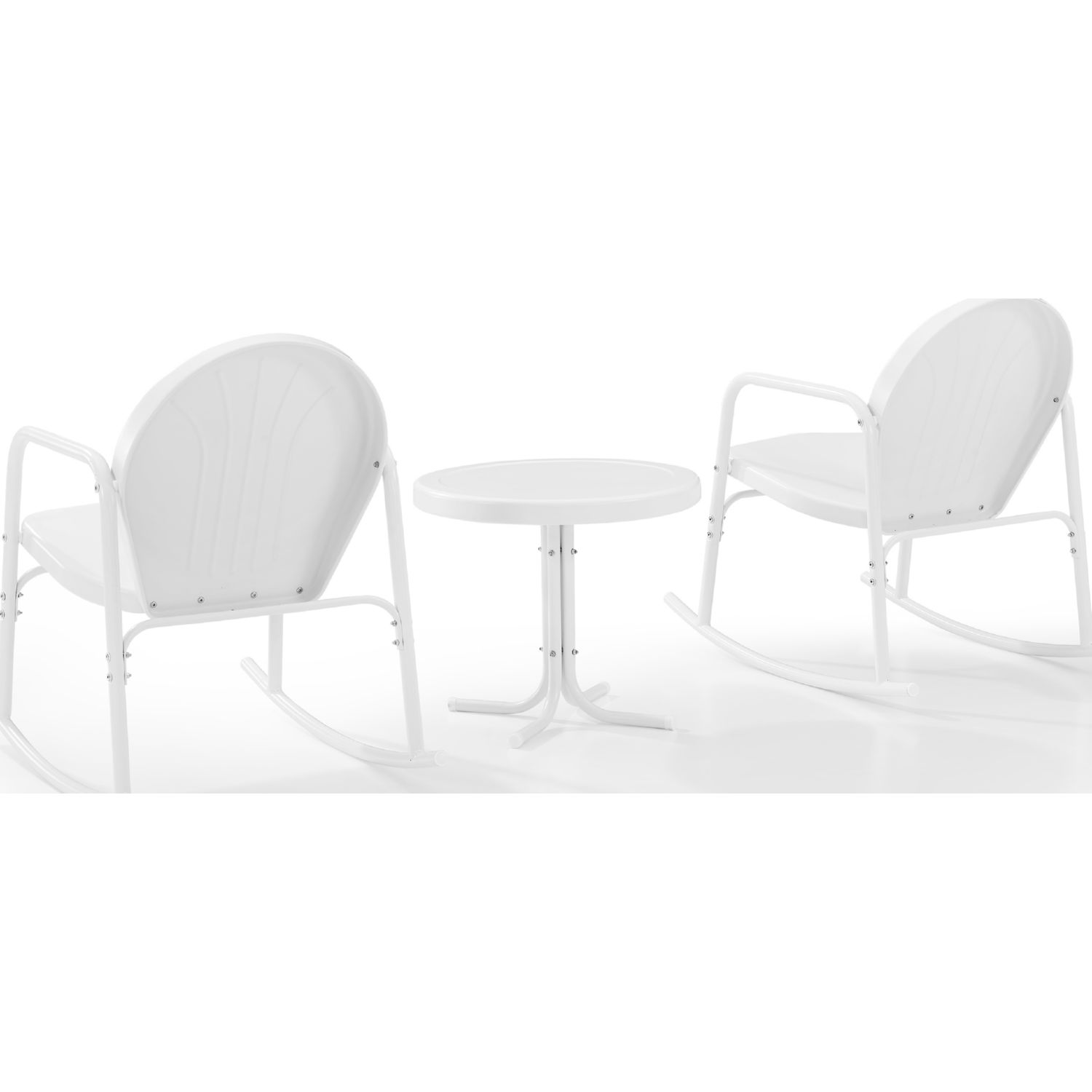 Crosley KO10020WH Griffith 3 Piece Outdoor 2 Rocking Chair Side Table Set White Gloss Satin Metal