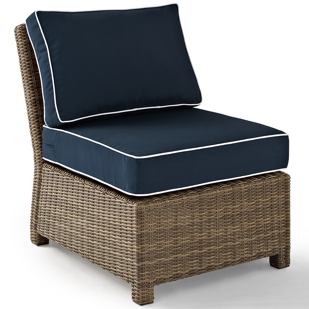 Crosley KO70017WB-NV Bradenton Outdoor Center Chair Sectional Unit Resin Wicker Navy Blue Fabric