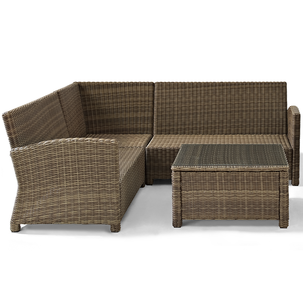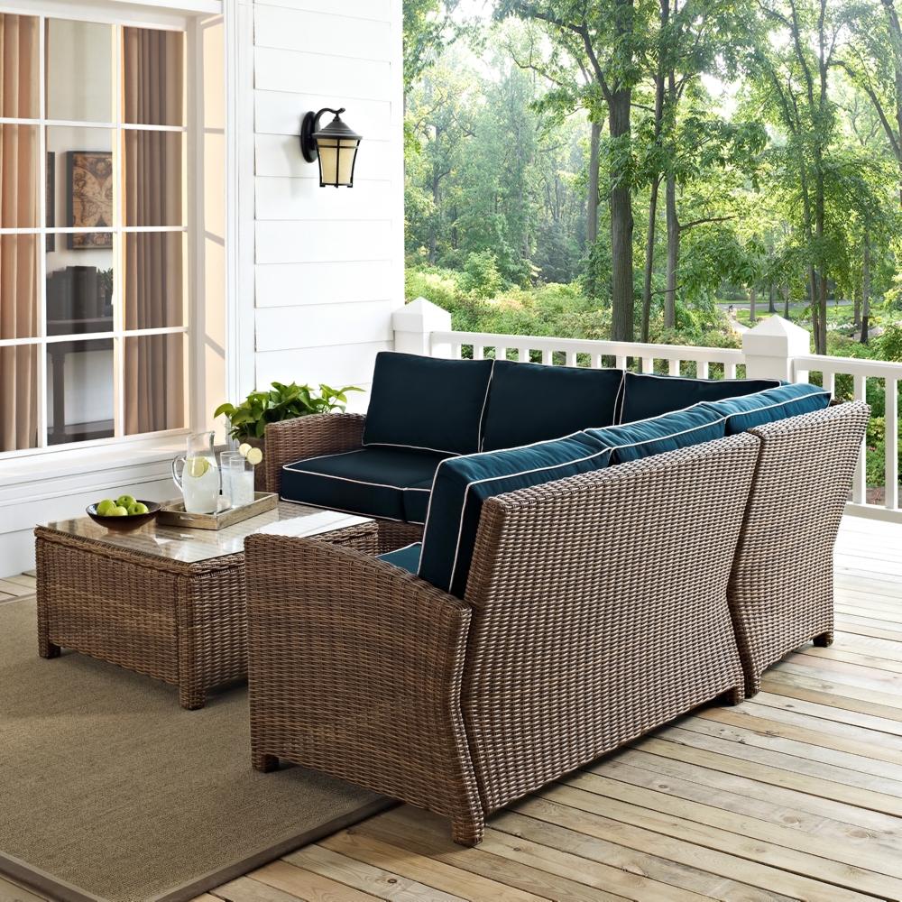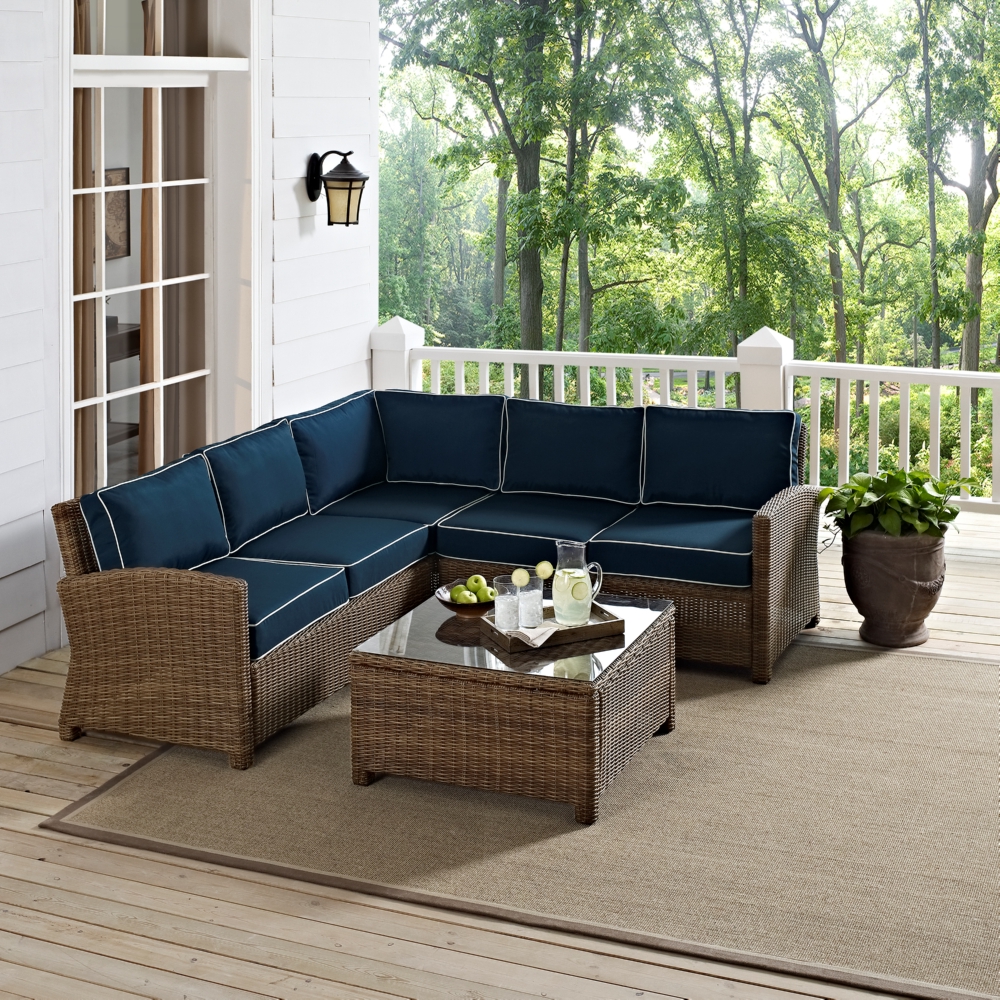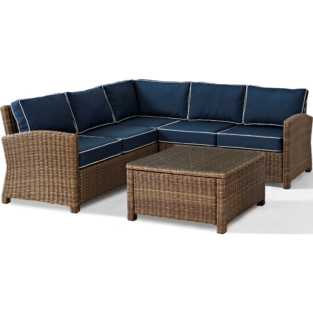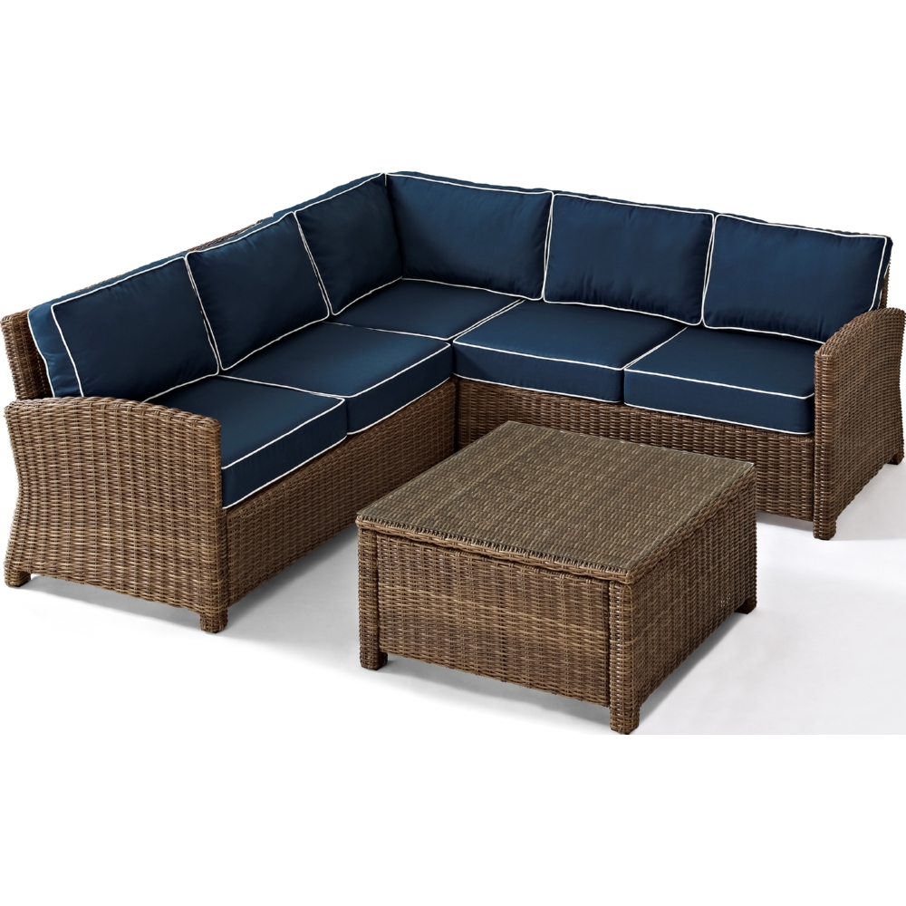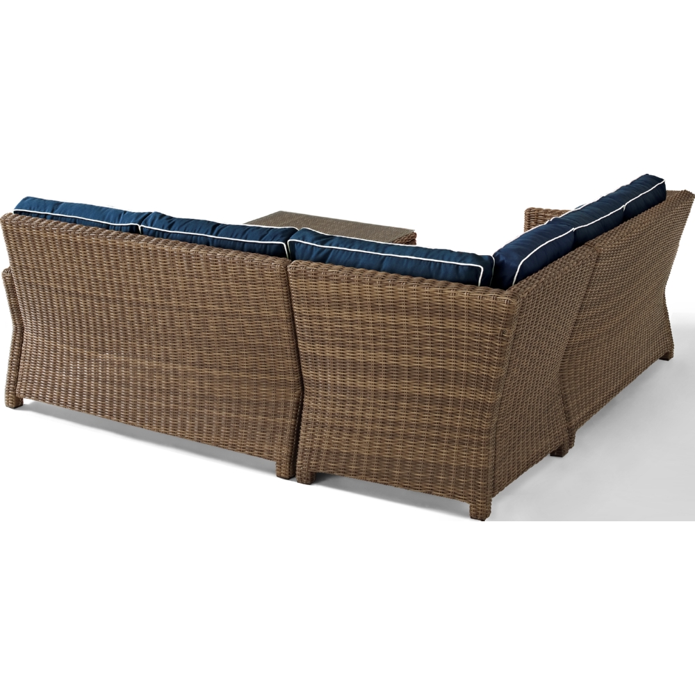 Crosley Bradenton 4 Piece Outdoor Sectional Sofa Set in Resin Wicker & Navy Blue Cushions