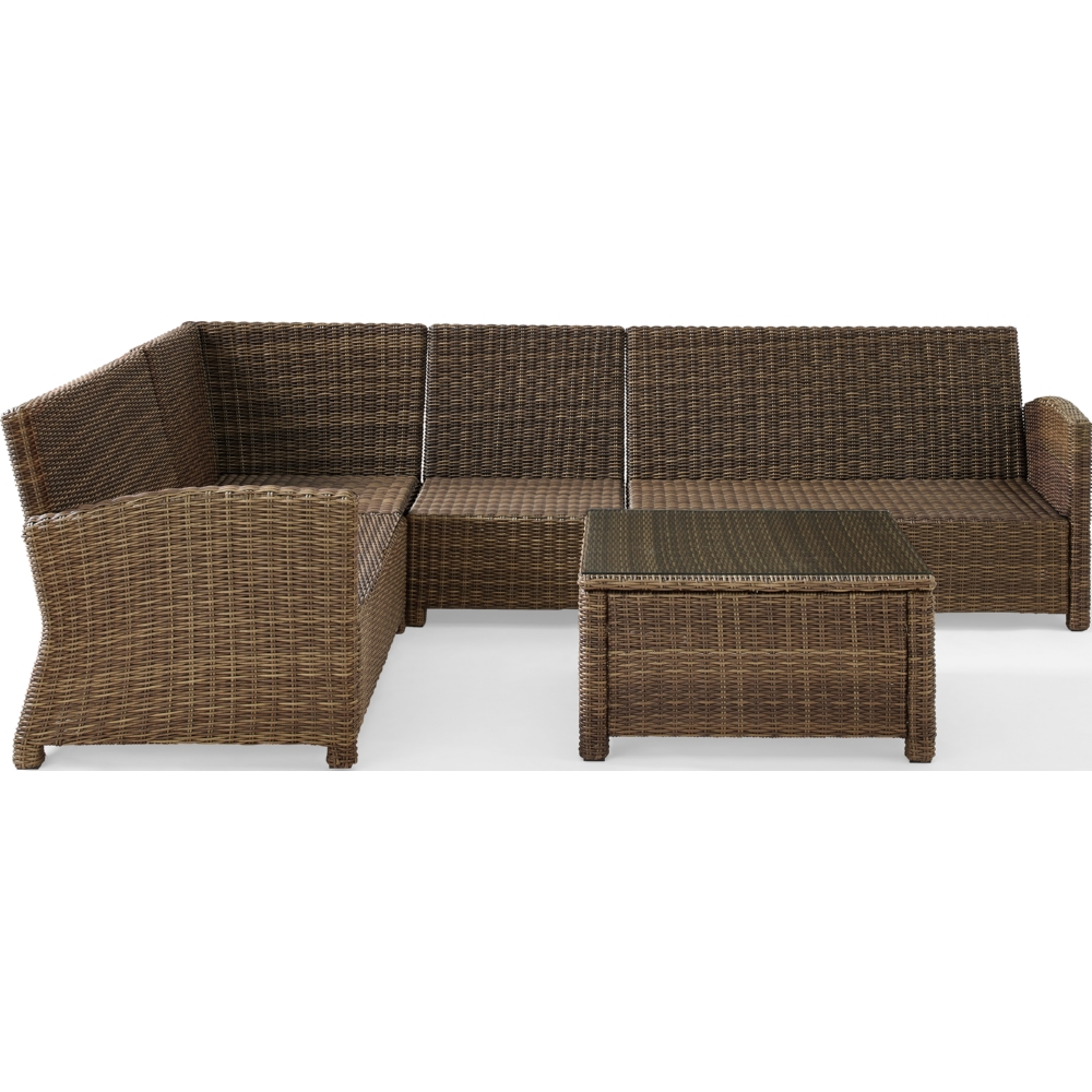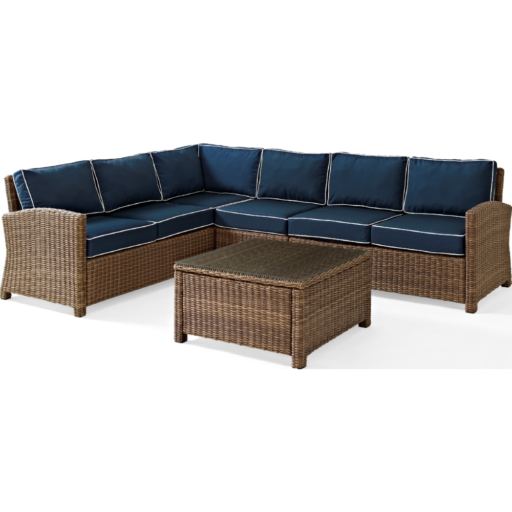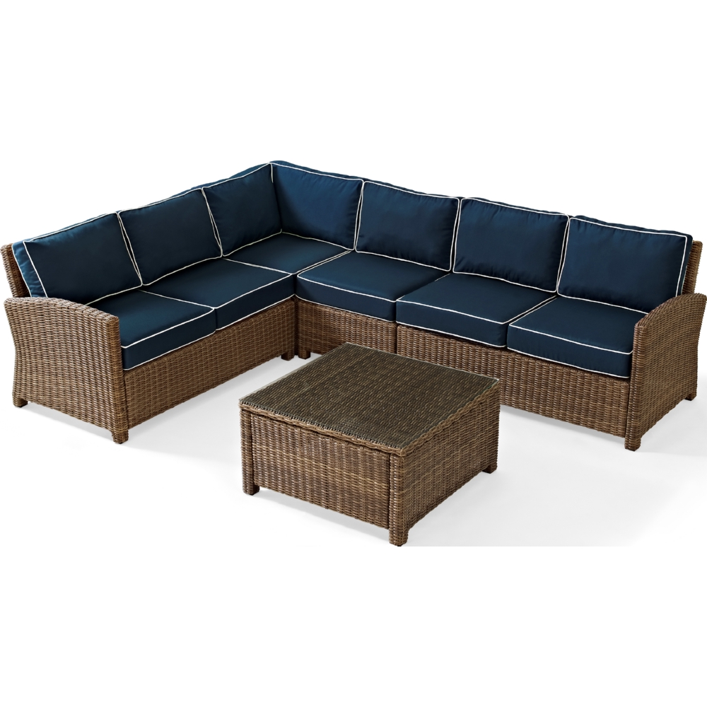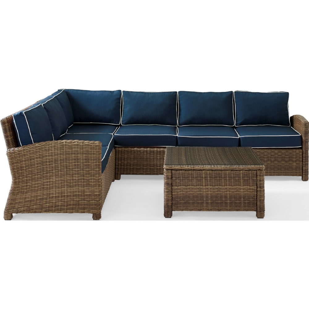 Crosley Bradenton 5 Piece Outdoor Sectional Sofa Set in Resin Wicker & Navy Blue Cushions