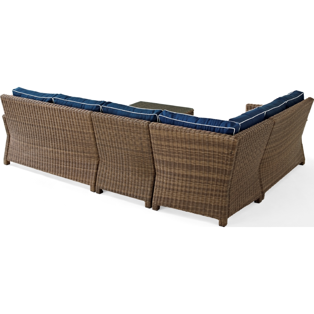 Crosley KO70020WB-NV Bradenton 5 Piece Outdoor Sectional Sofa Set Resin Wicker Navy Blue Cushions