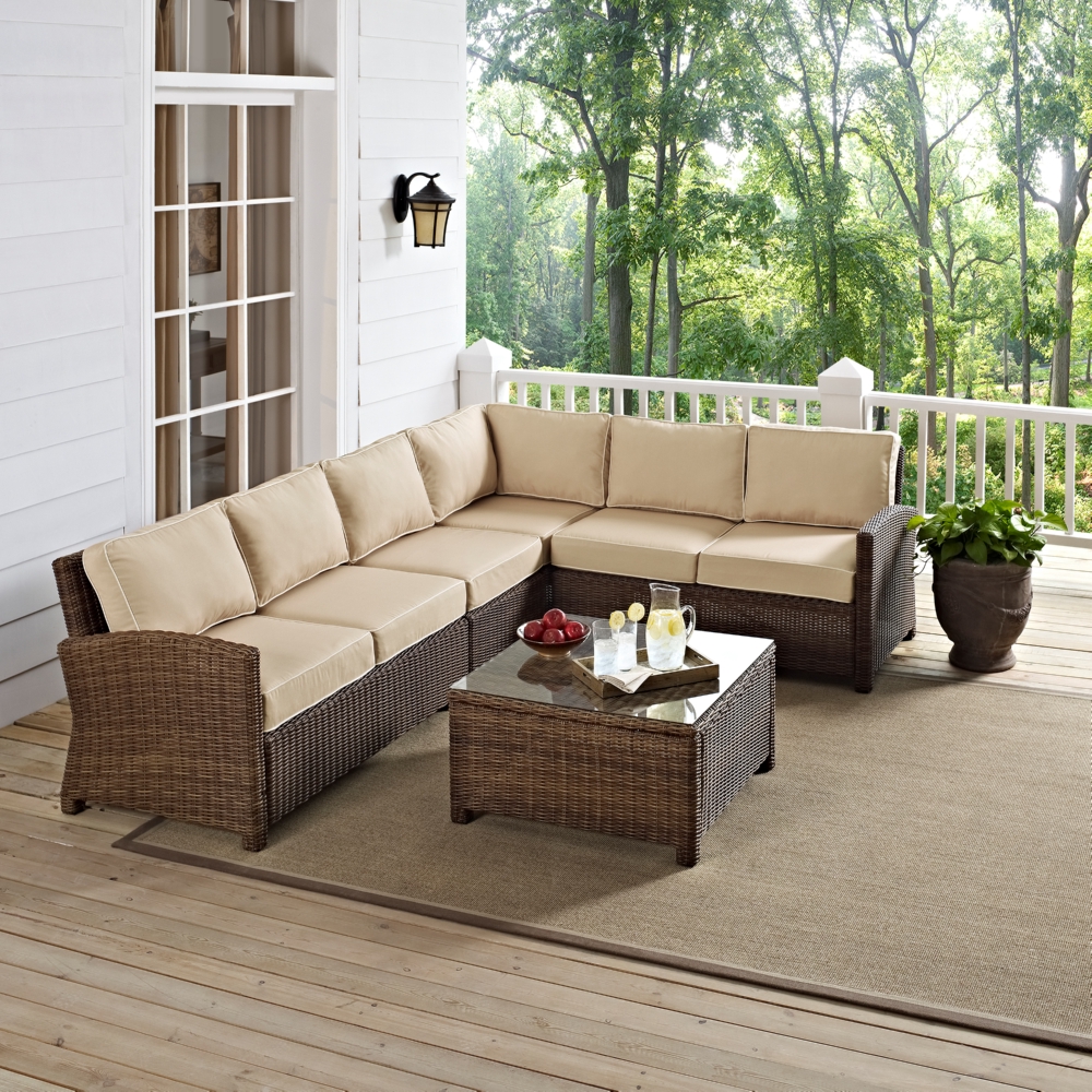 Crosley Bradenton 5 Piece Outdoor Sectional Sofa Set in Resin Wicker & Sand Cushions