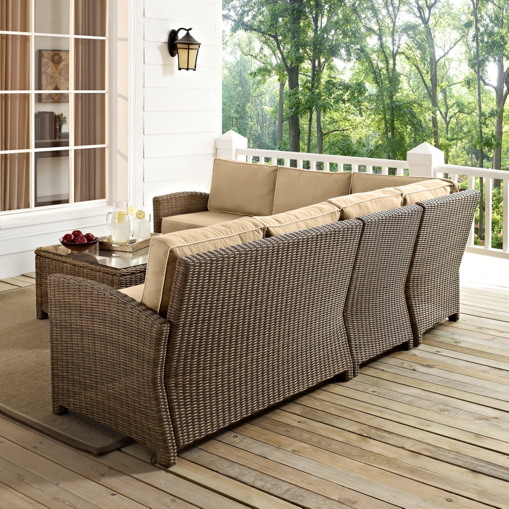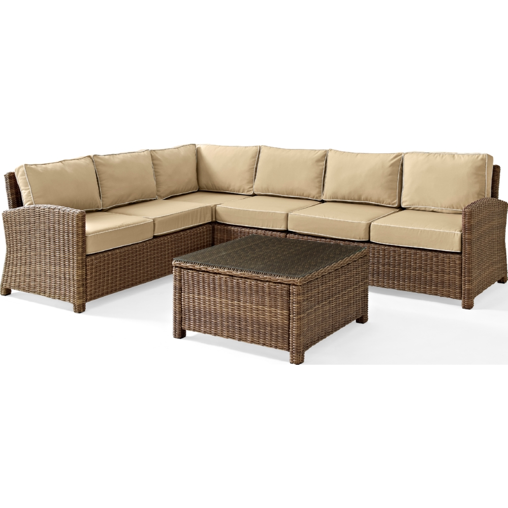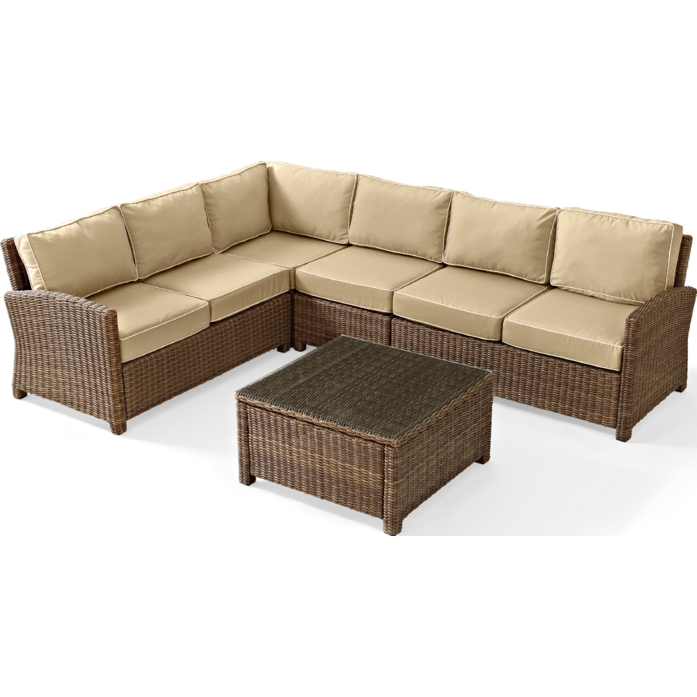 Crosley KO70020WB-SA Bradenton 5 Piece Outdoor Sectional Sofa Set Resin Wicker Sand Cushions