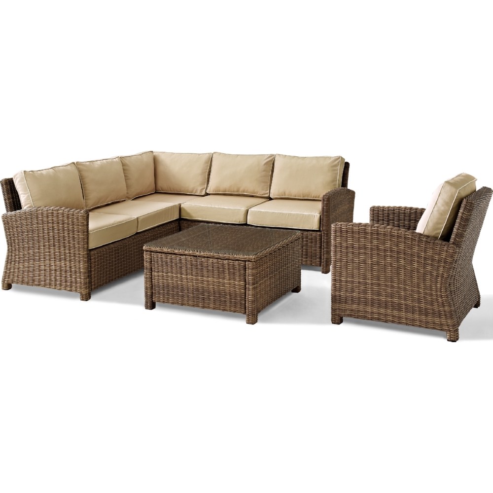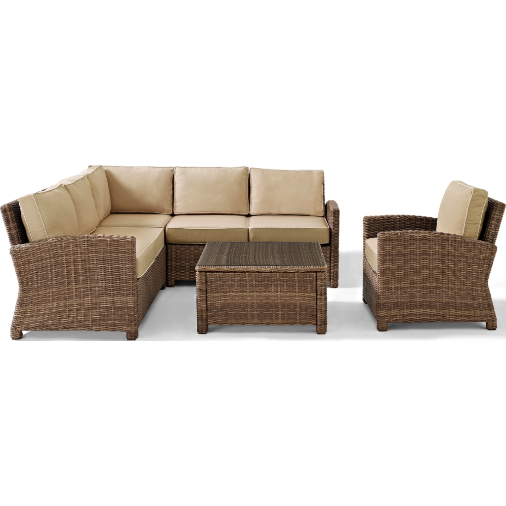 Crosley KO70021WB-SA Bradenton 5 Piece Outdoor Sectional Sofa Set Resin Wicker Sand Cushions
