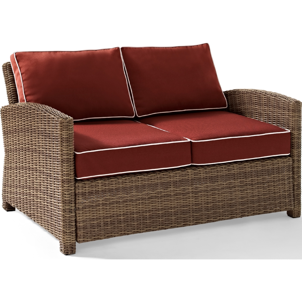 Crosley Bradenton Outdoor Loveseat in Resin Wicker & Sangria Cushions