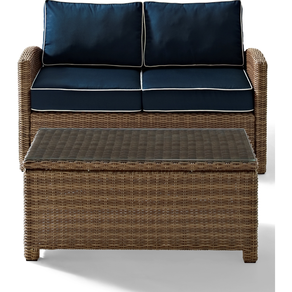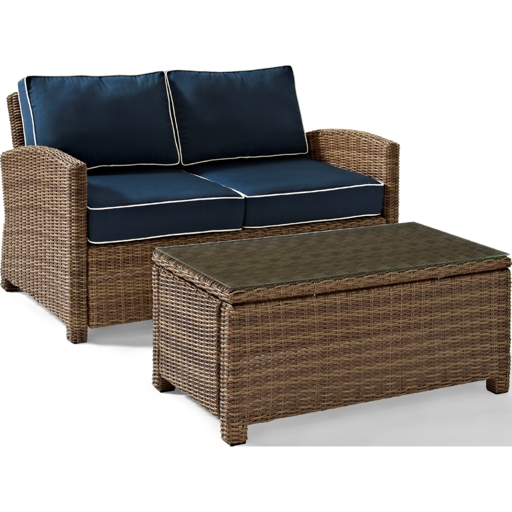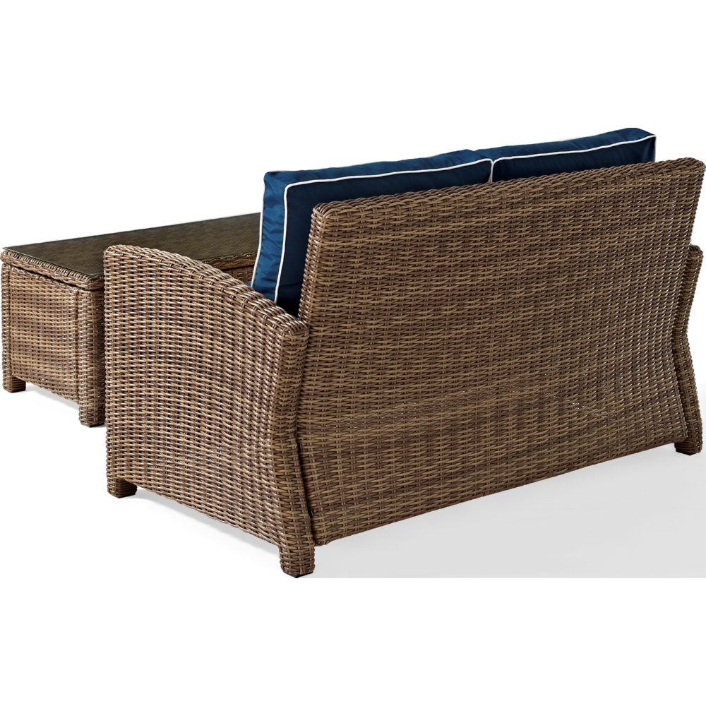 Crosley Bradenton 2 Piece Outdoor Loveseat Set in Resin Wicker & Navy Blue Cushions