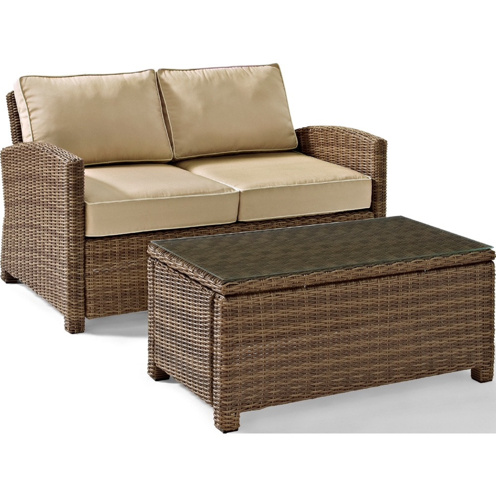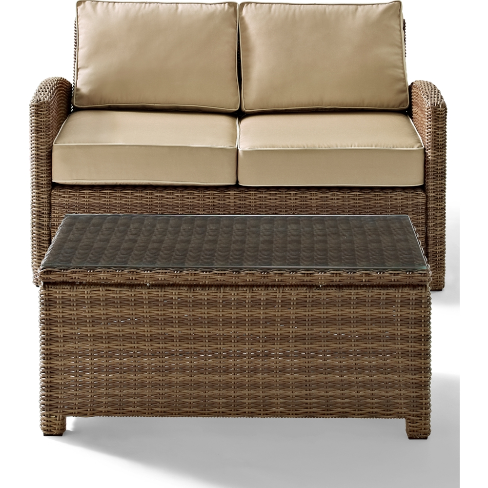 Crosley KO70025WB-SA Bradenton 2 Piece Outdoor Loveseat Set Resin Wicker Sand Cushions