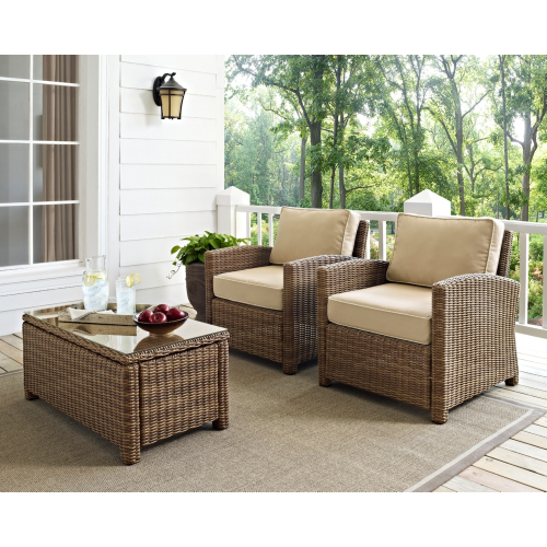 Crosley KO70026WB-SA Bradenton 2 Piece Outdoor Arm Chair Set Resin Wicker Sand Cushions