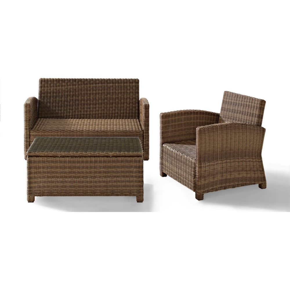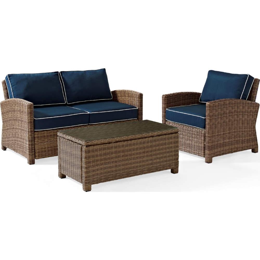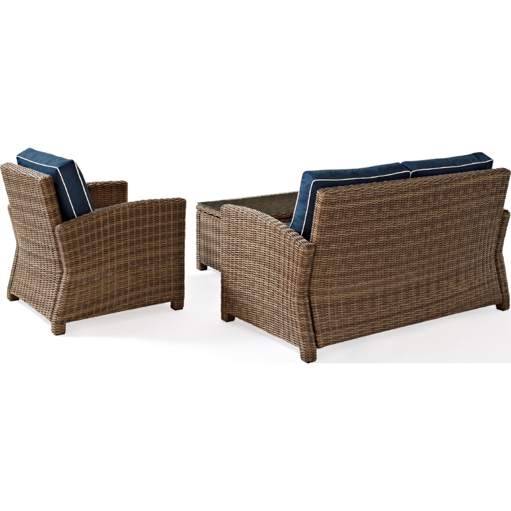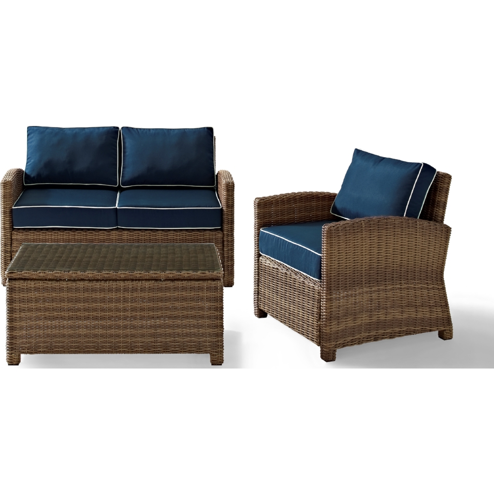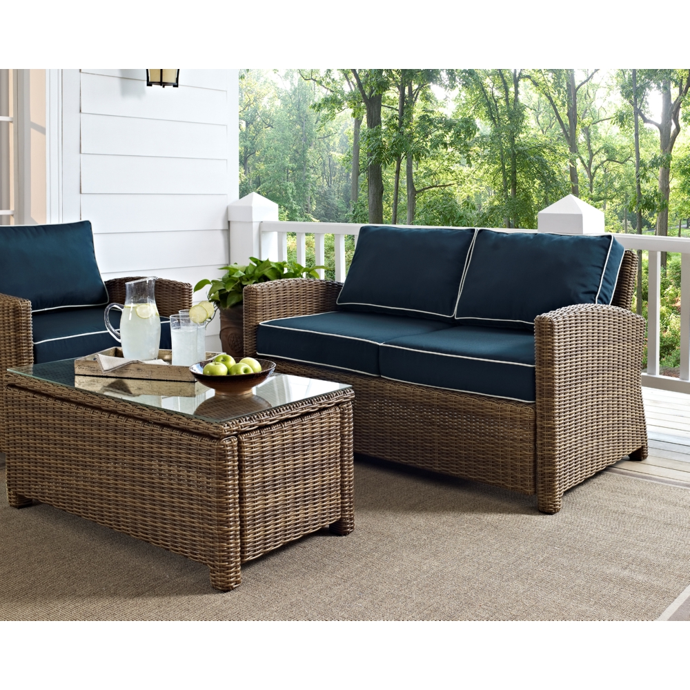 Crosley Bradenton 3 Piece Outdoor Loveseat Set in Resin Wicker & Navy Blue Cushions