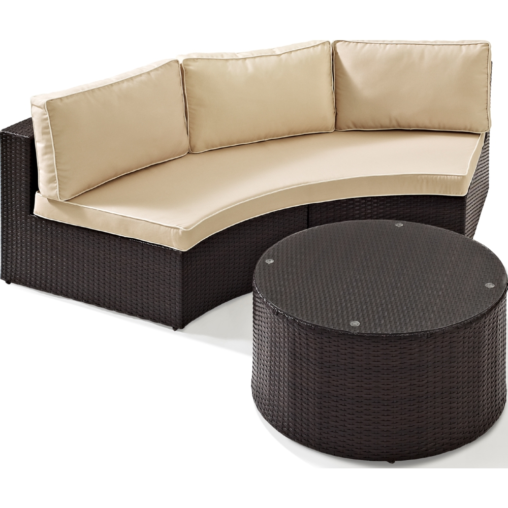 Crosley KO70034BR Catalina 2 Piece Outdoor Sectional Sofa Set Resin Wicker Sand Cushions