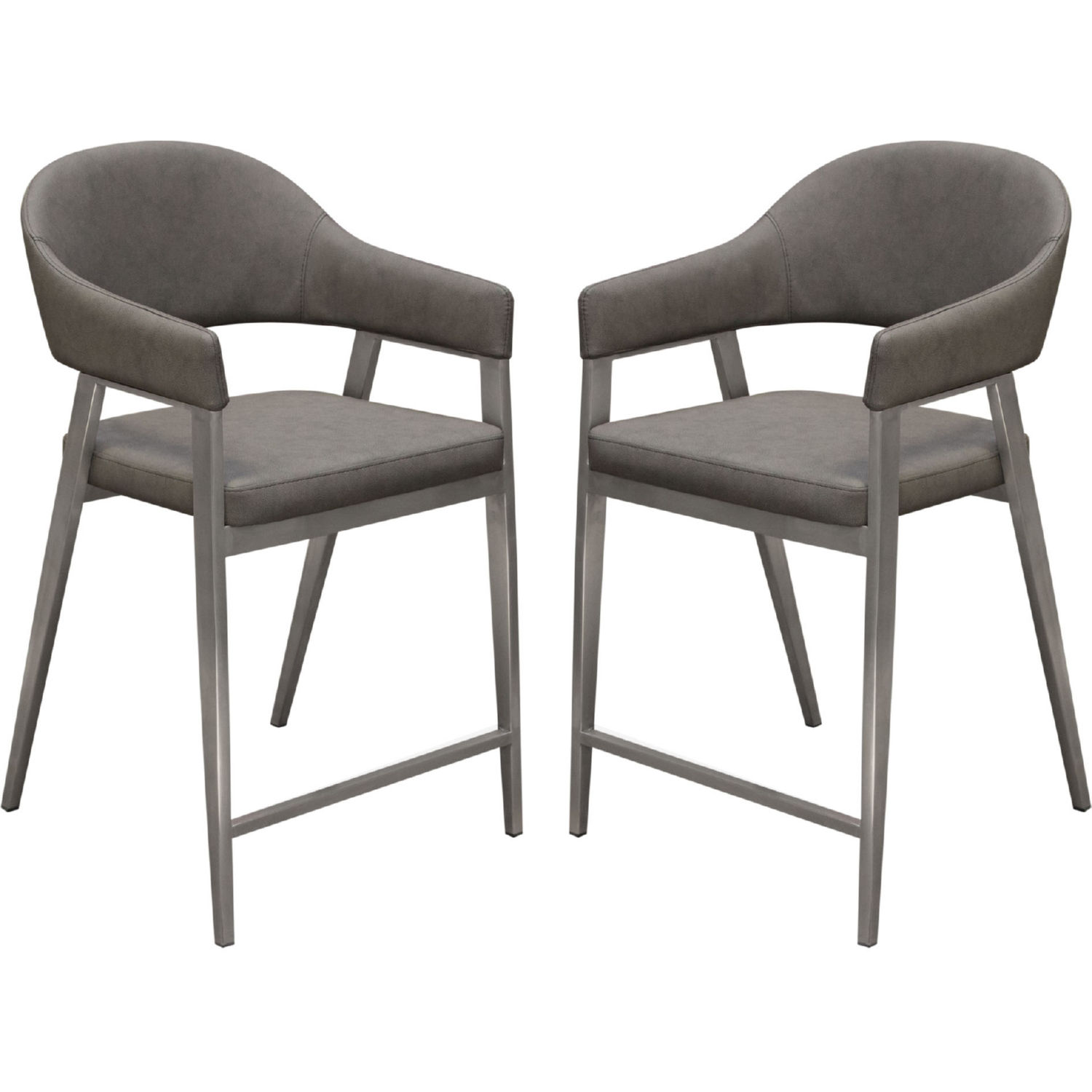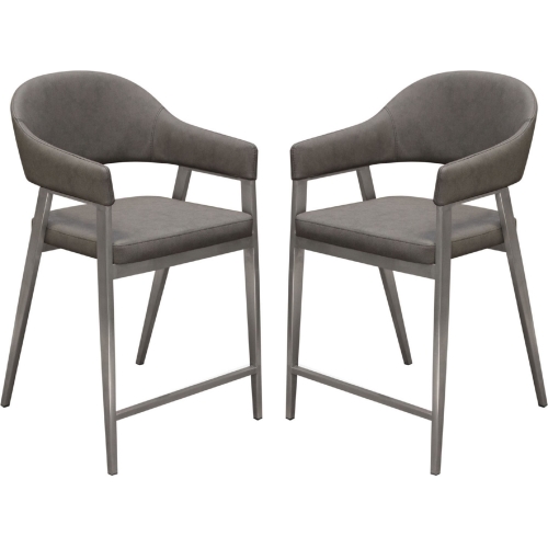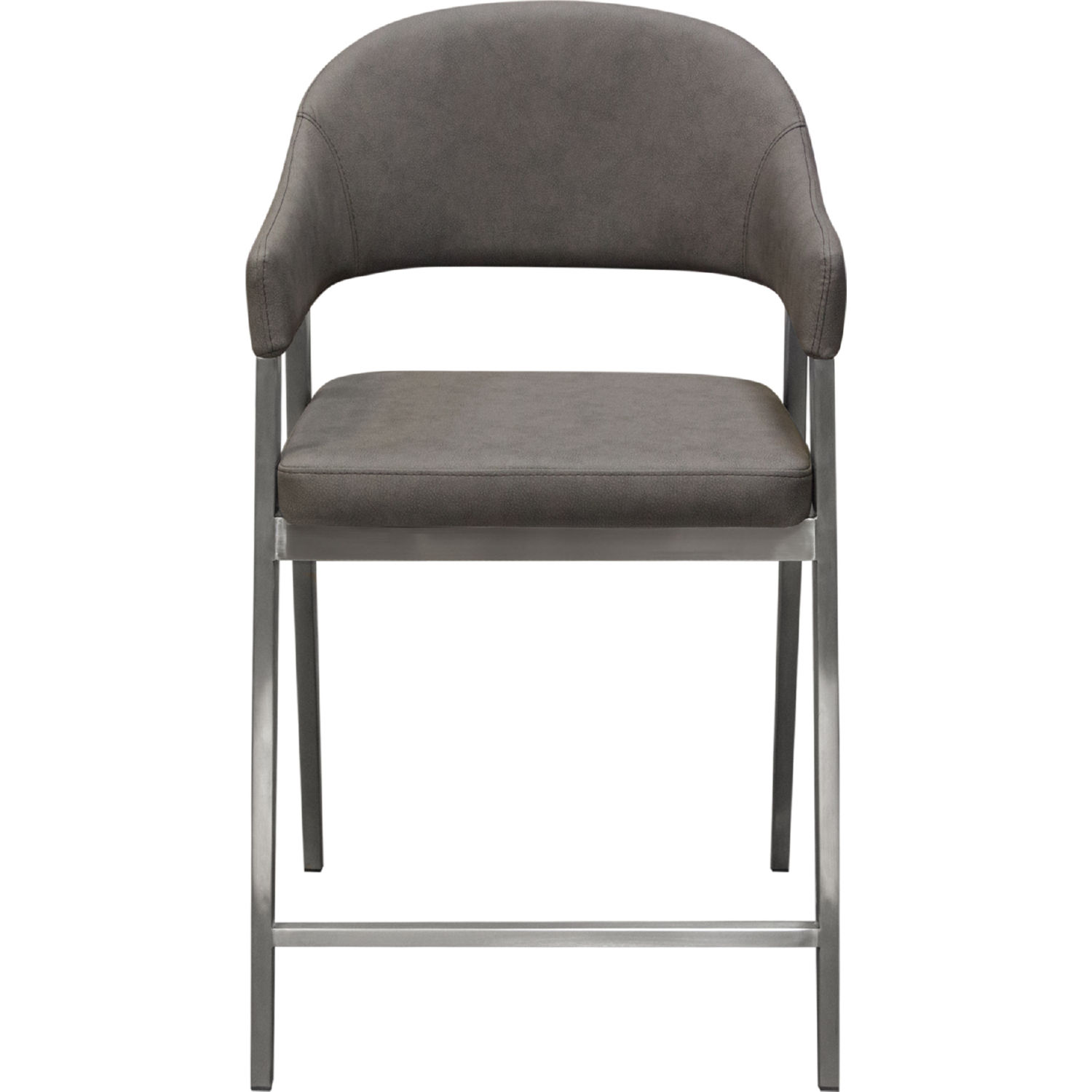Diamond Sofa Adele Counter Chair Stool in Grey Leatherette Brushed Stainless Steel (Set of 2)