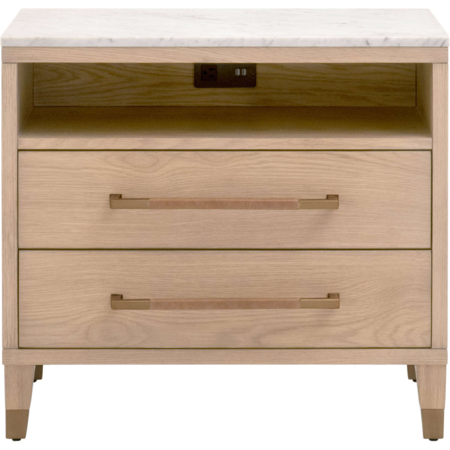 Essentials for Living 5250.NAT-OAK/BIA Cambria 2 Drawer Nightstand in Natural Oak, Bianco Marble & Brass