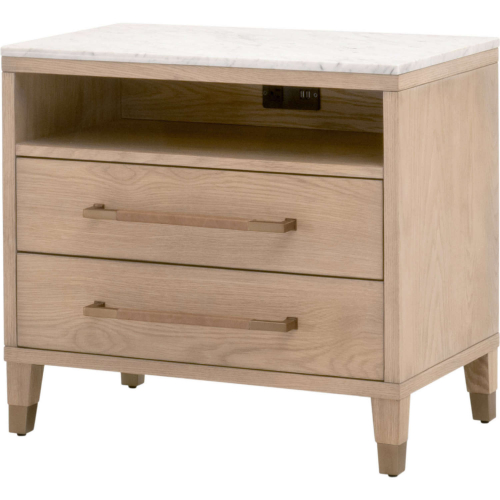 Essentials for Living Cambria 2 Drawer Nightstand in Natural Oak, Bianco Marble & Brass 5250.NAT-OAK/BIA
