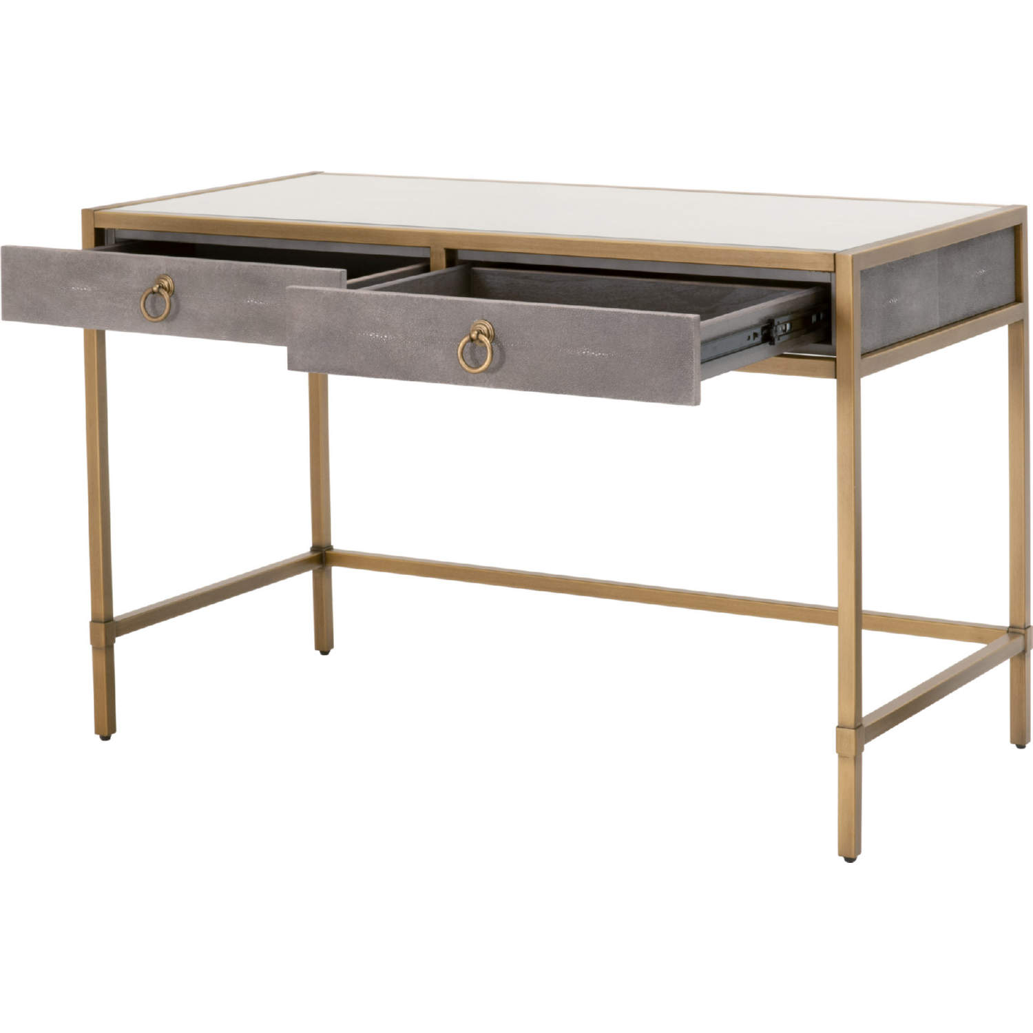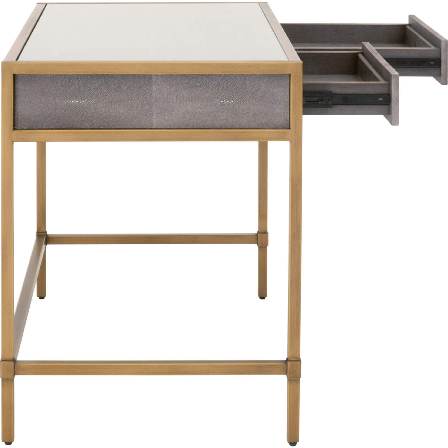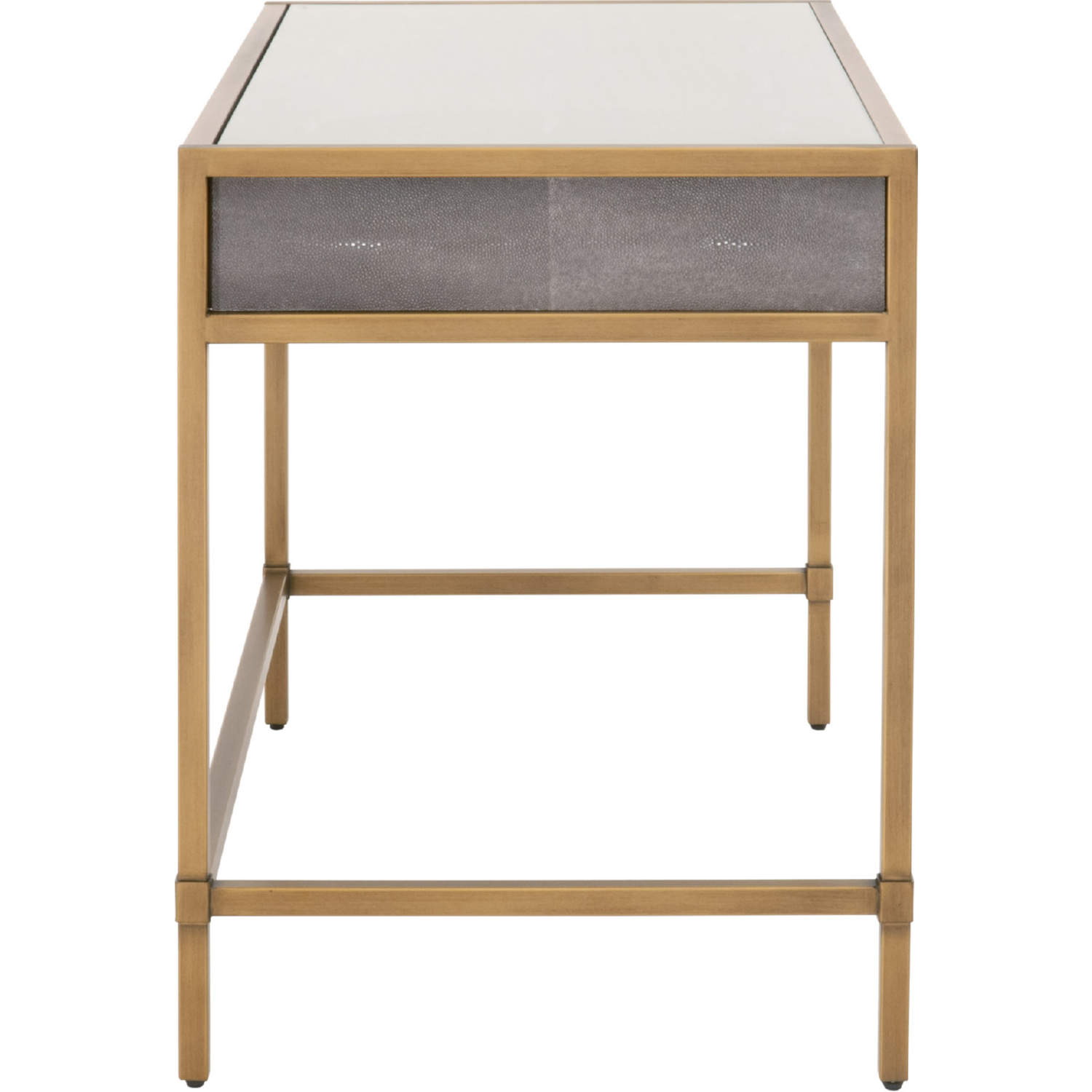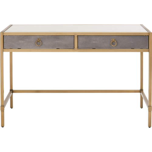 Essentials for Living 6124.GRY-SHG/GLD Strand Writing Desk Grey Faux Shagreen Brushed Gold