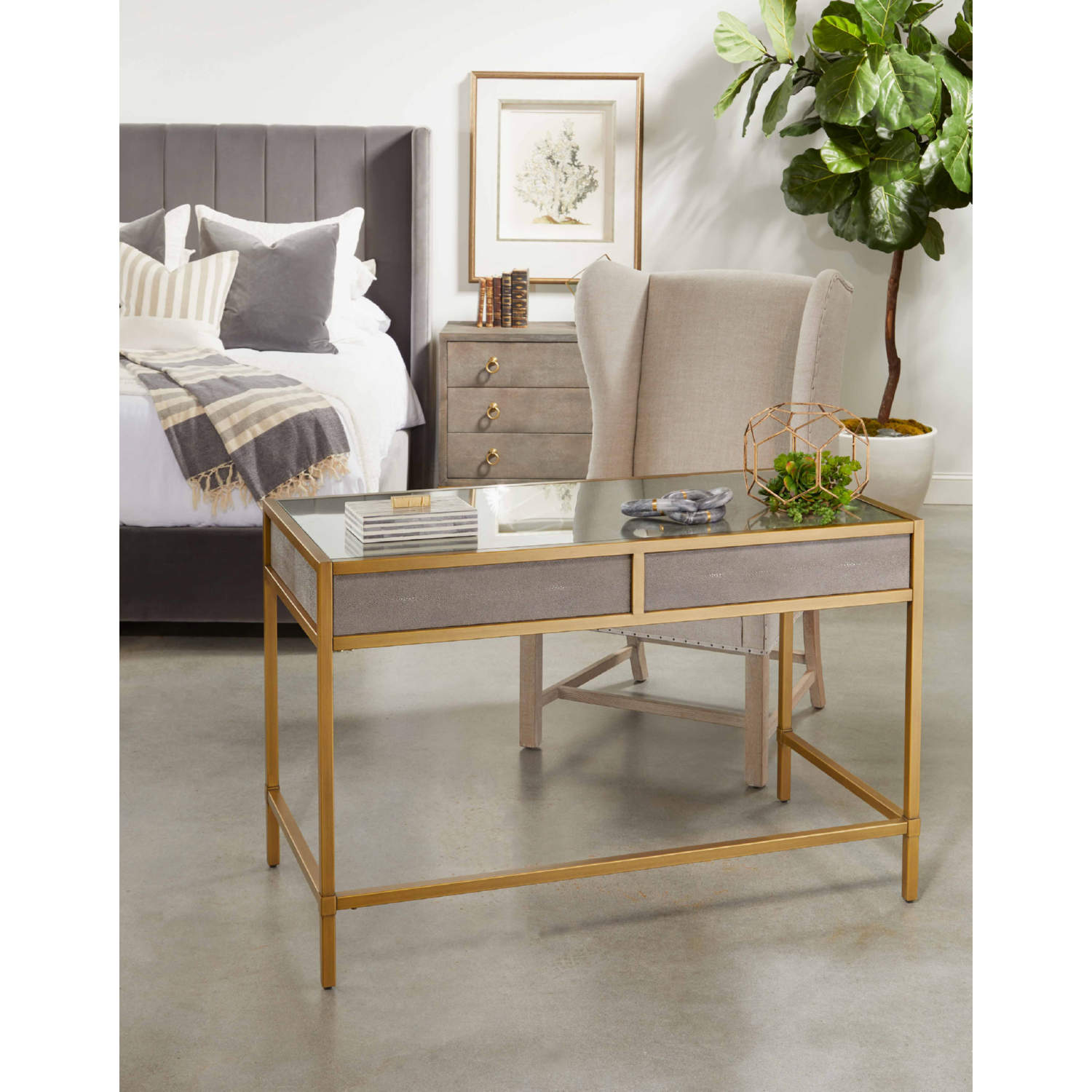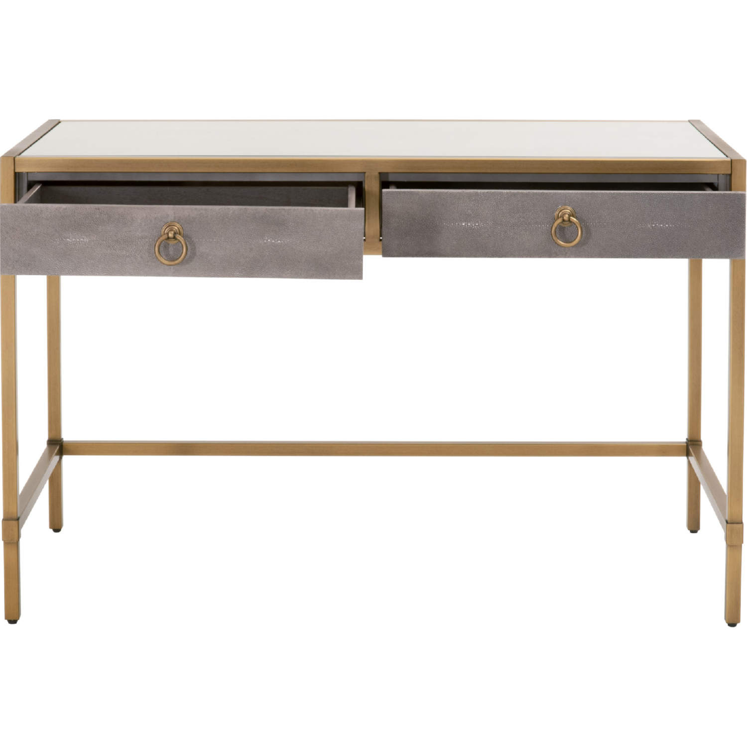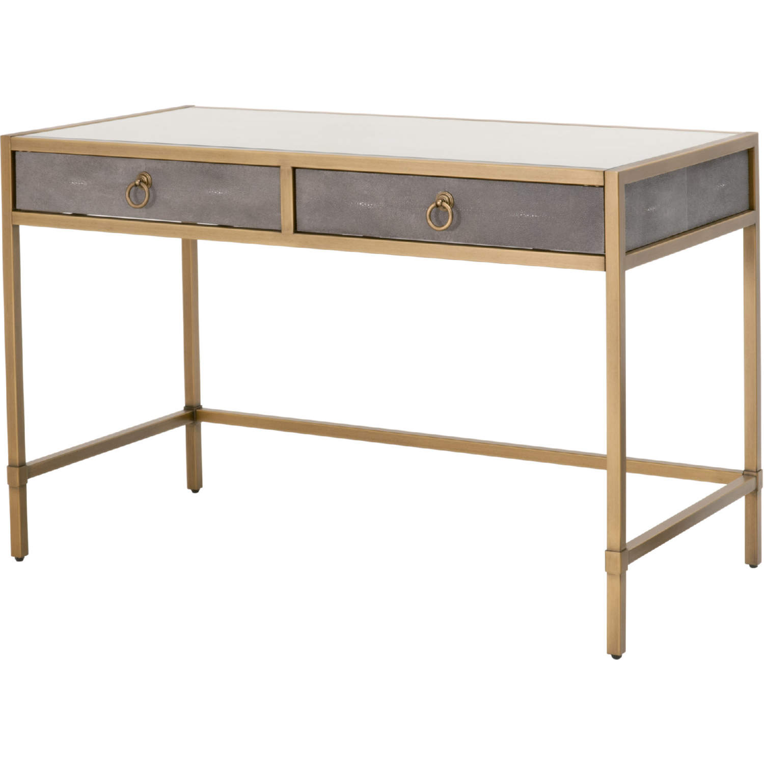 Essentials for Living Strand Writing Desk in Grey Faux Shagreen & Brushed Gold 6124.GRY-SHG/GLD
