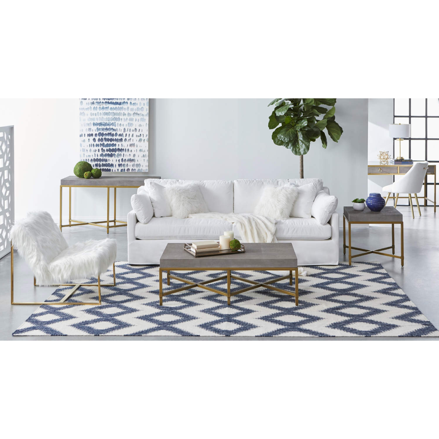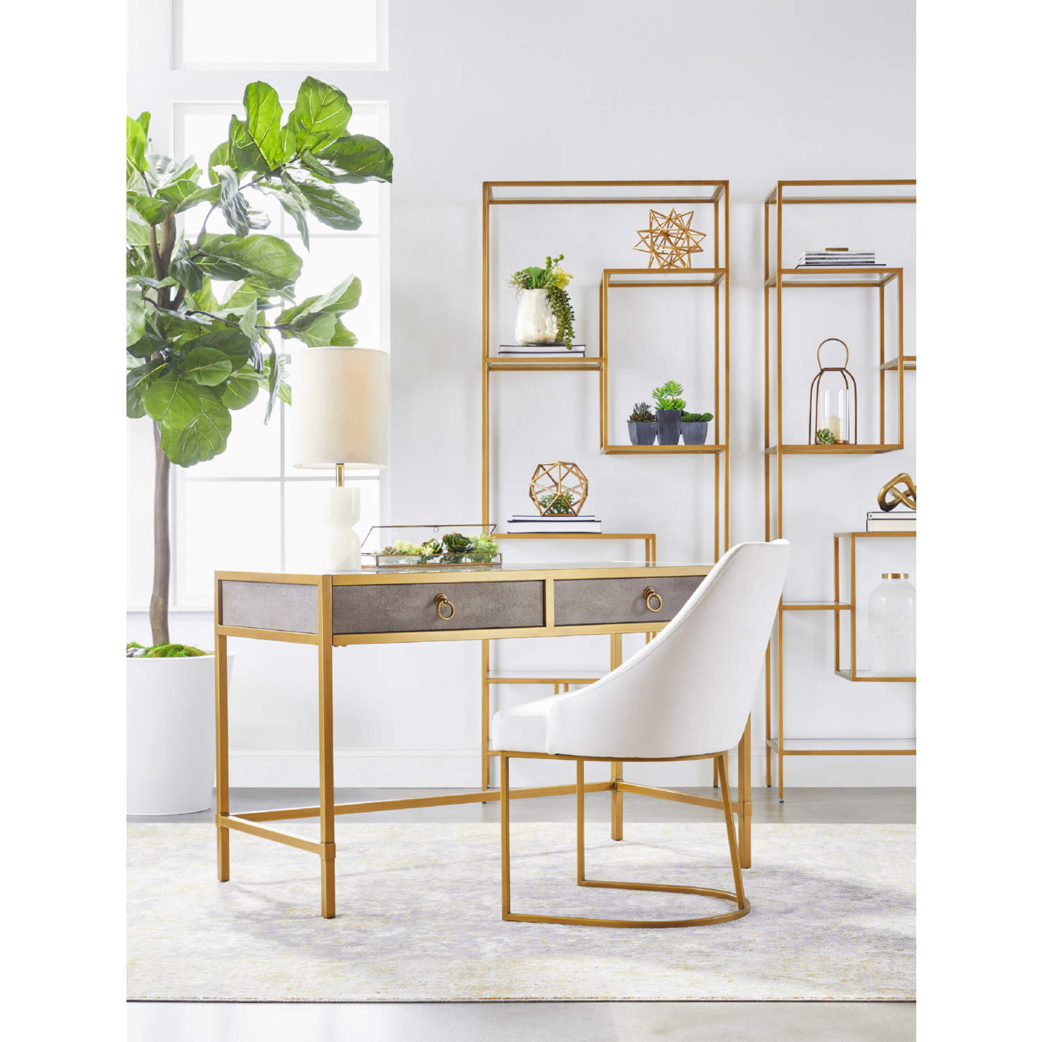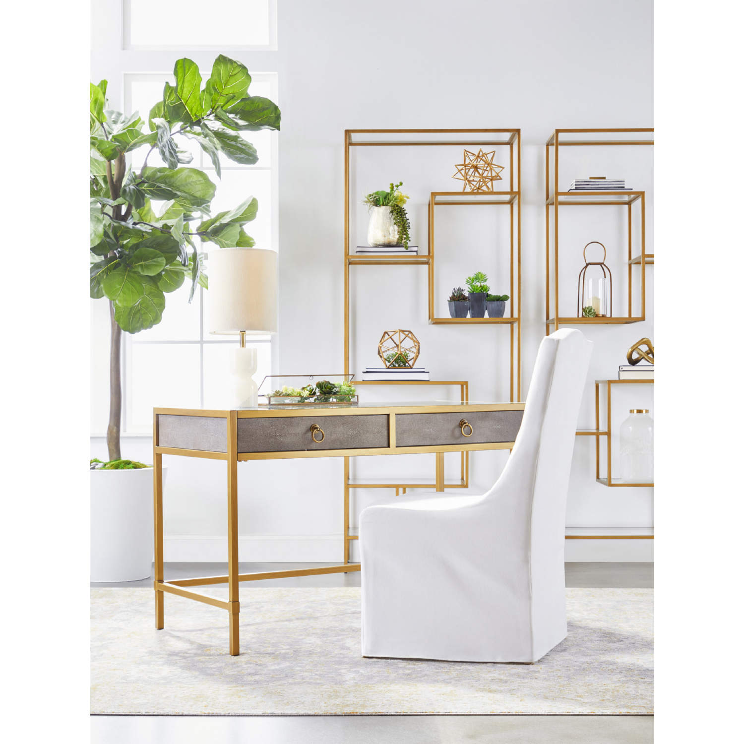 Essentials for Living Strand Writing Desk in Grey Faux Shagreen & Brushed Gold 6124.GRY-SHG/GLD