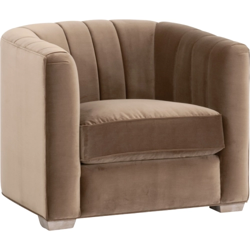 Essentials for Living Bronx 87" Accent Chair in Vertical Channel Tufted Carmel Brown Velvet 6615-1.CAR/NG