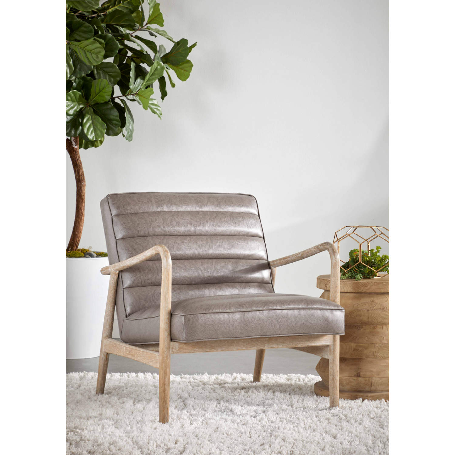 Essentials for Living Tahoe Accent Club Chair in Channel Tufted Gray Leatherette & Wood 6658.OGRY/NG