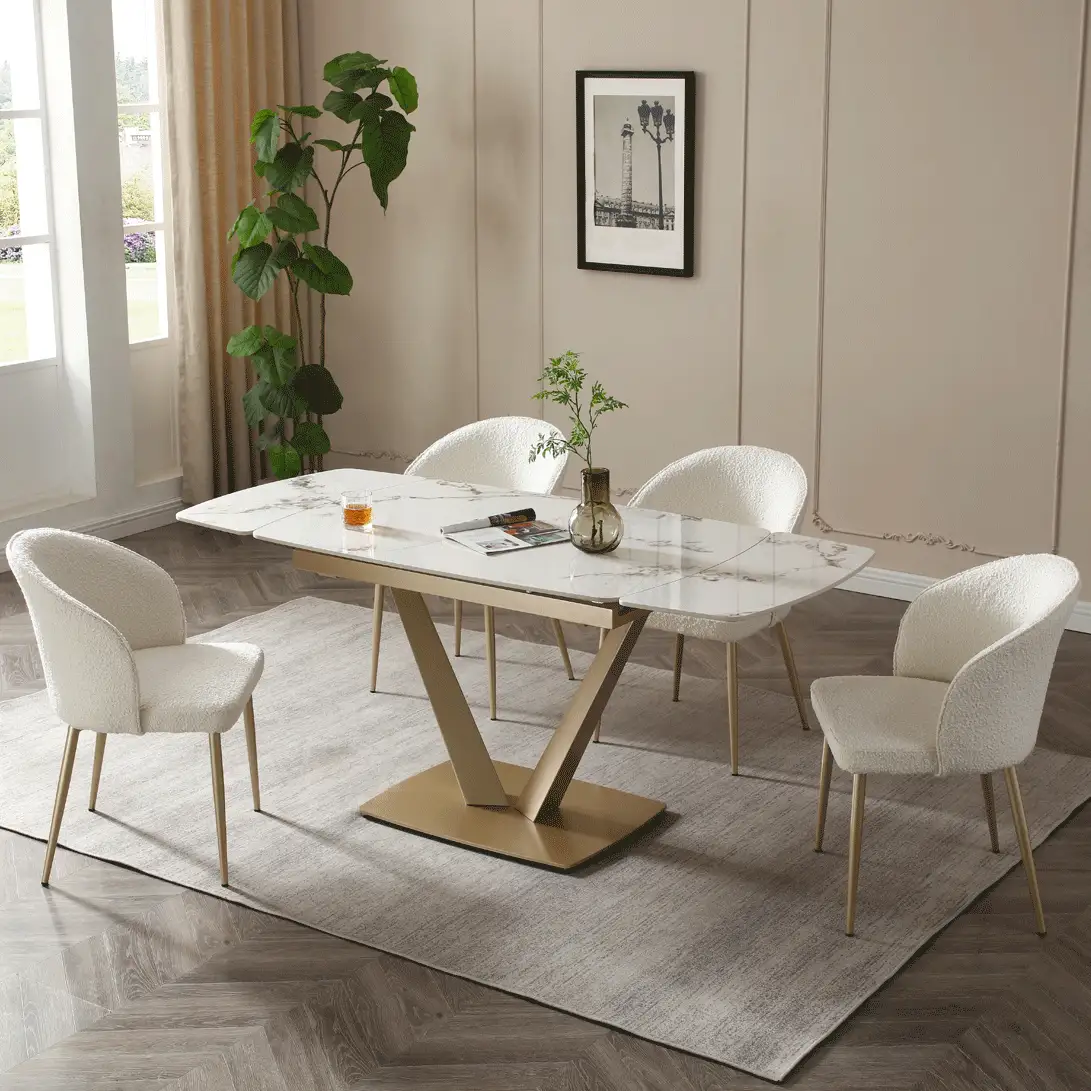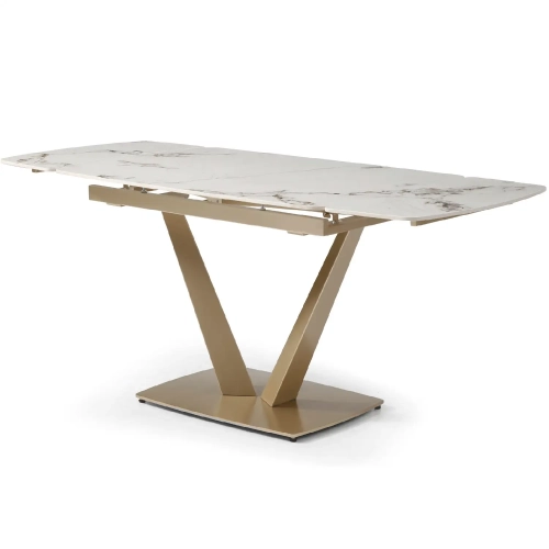 Extravaganza Collection 109 Dining Table in White Marble Look Ceramic & Golden Champagne Metal