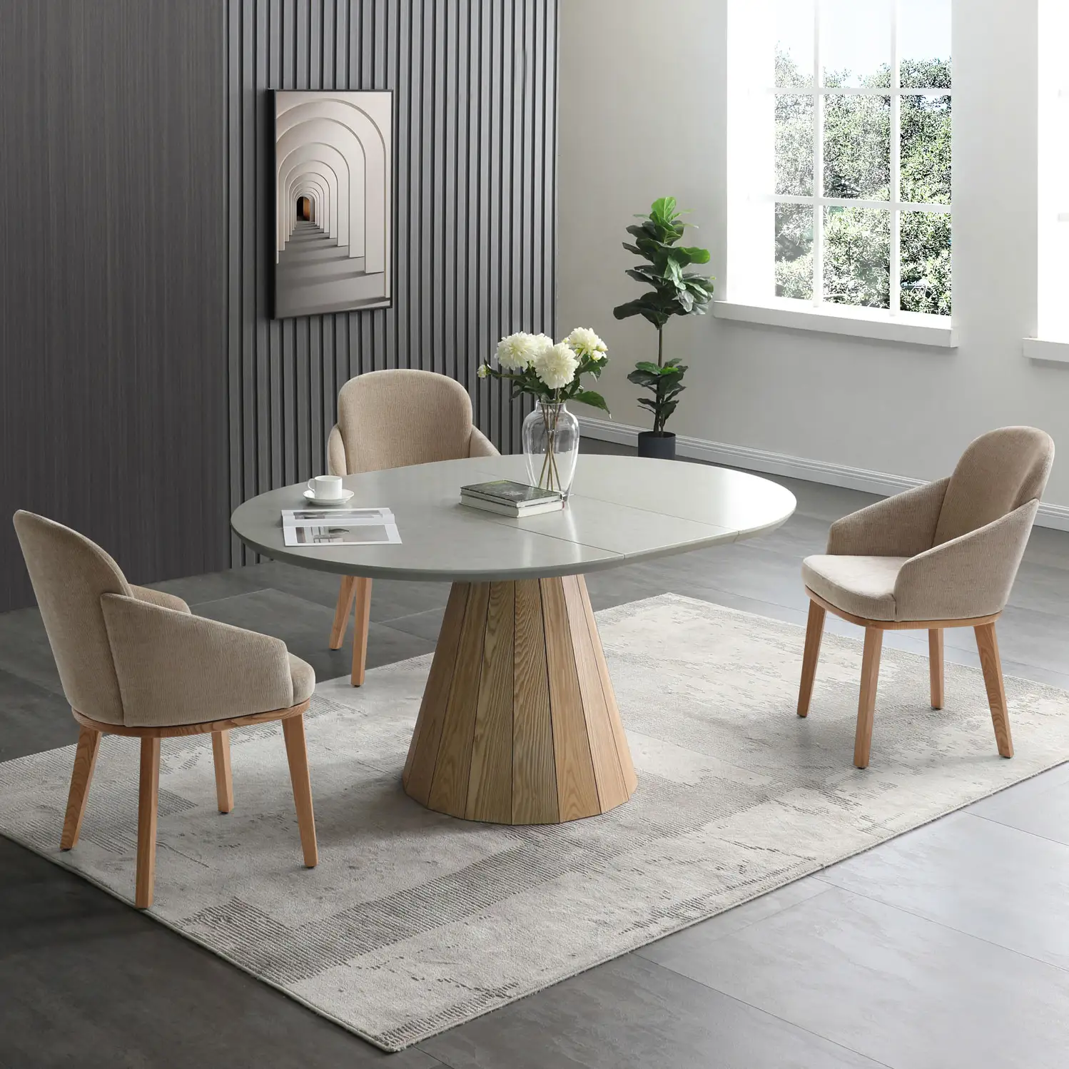 Extravaganza Collection 1449CHAIR 1449 Dining Chair in Beige Fabric Ash Wood