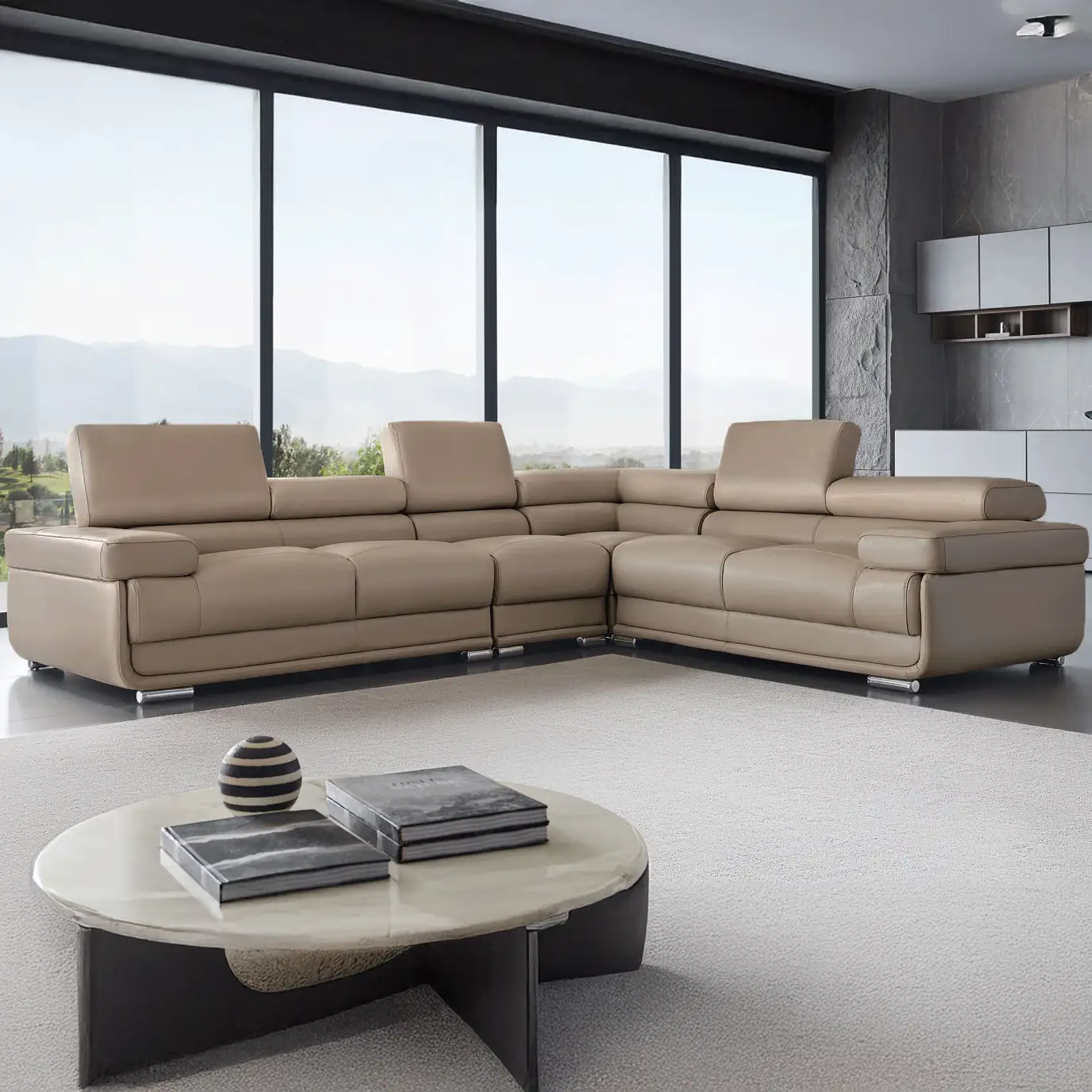 Extravaganza Collection 2120 Sectional Sofa w/ Left or Right Chaise in Beige Cream Leather