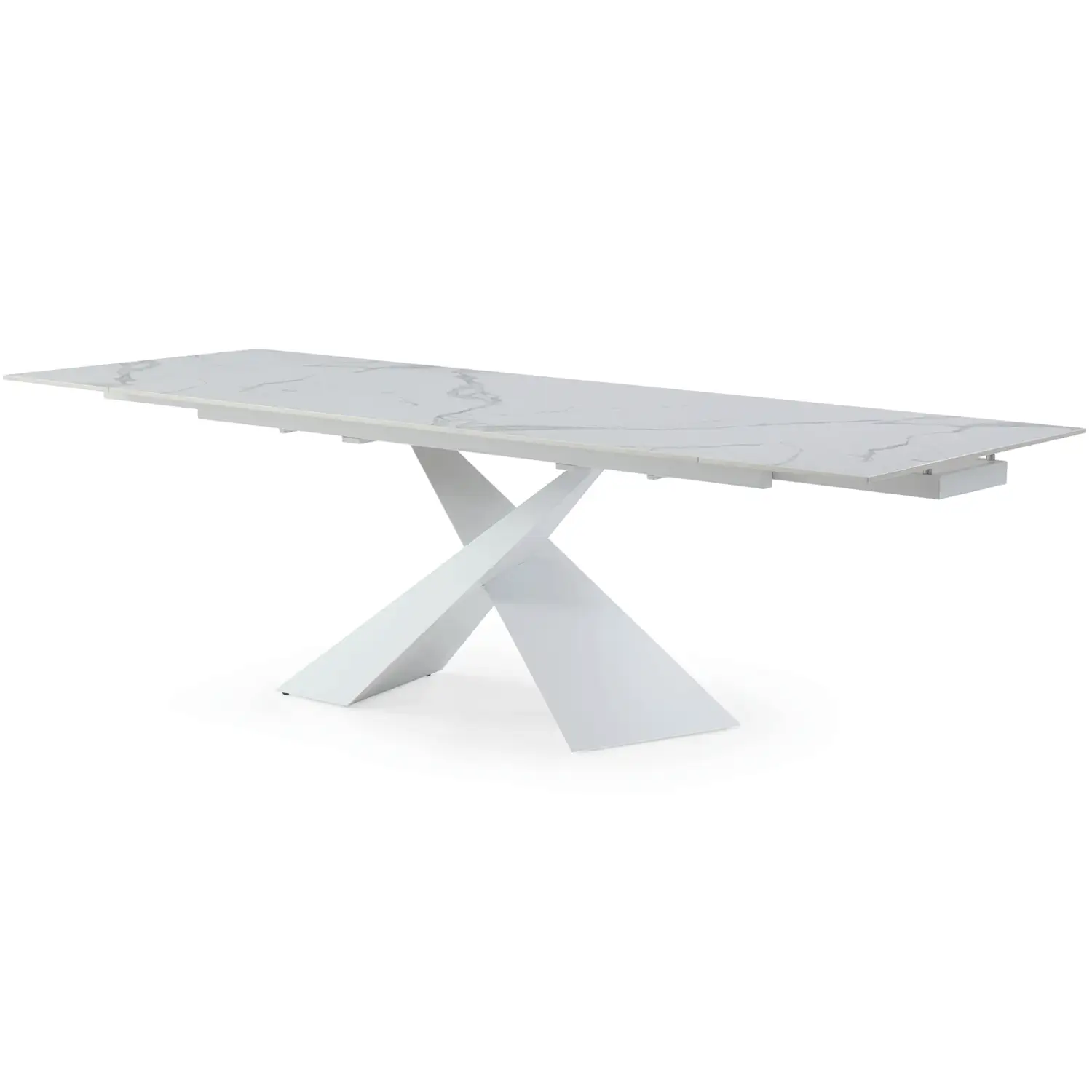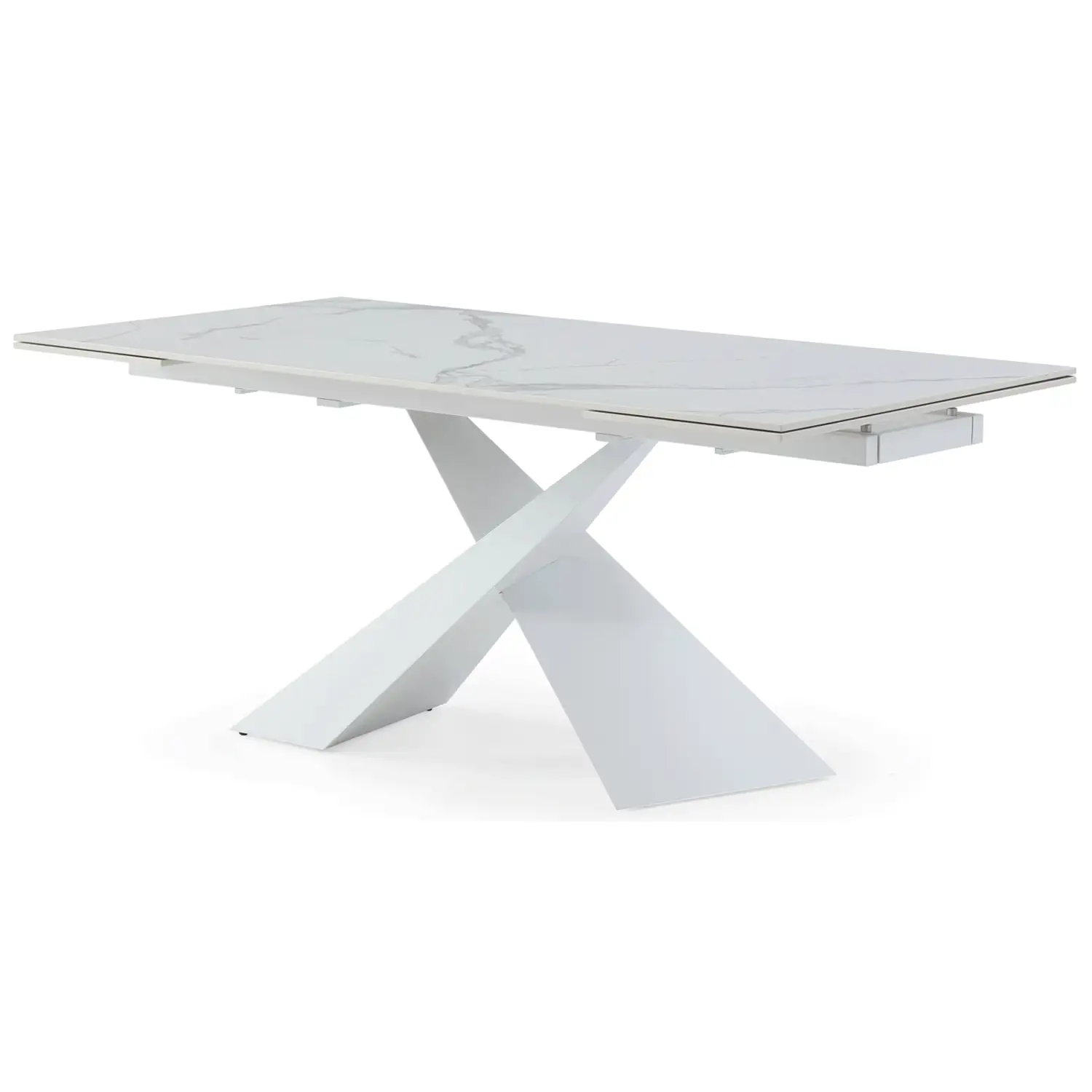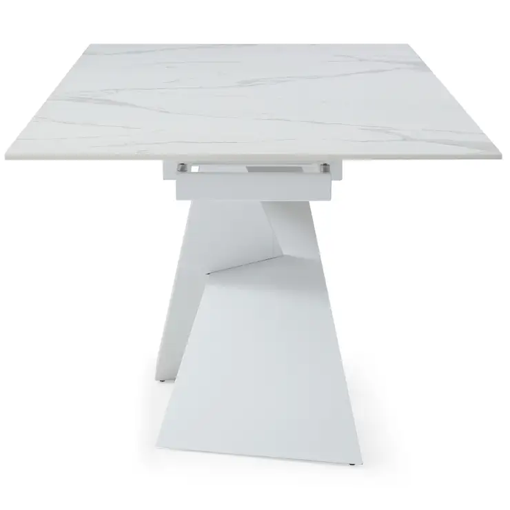 Extravaganza Collection 9113 71" Extention Dining Table in White Marble Look Ceramic & White Metal