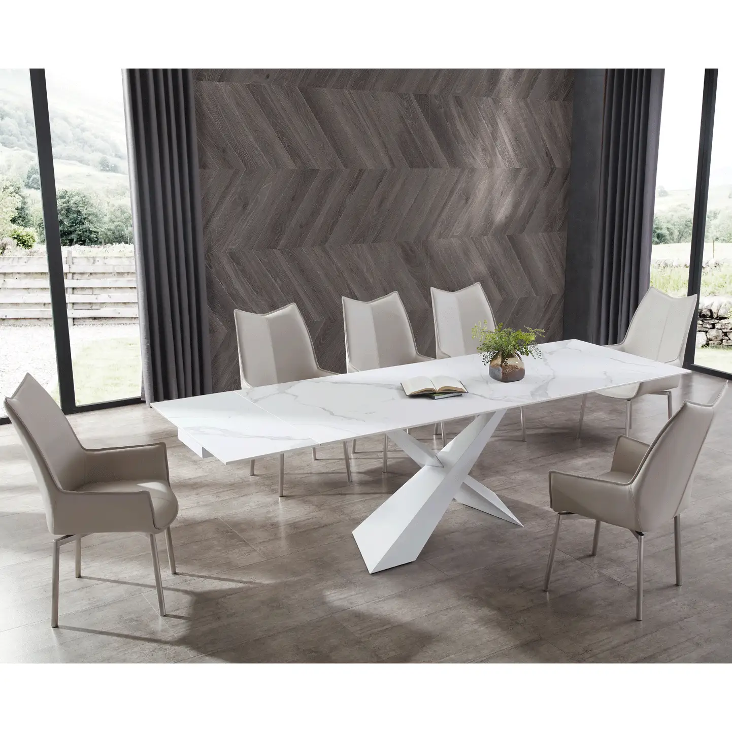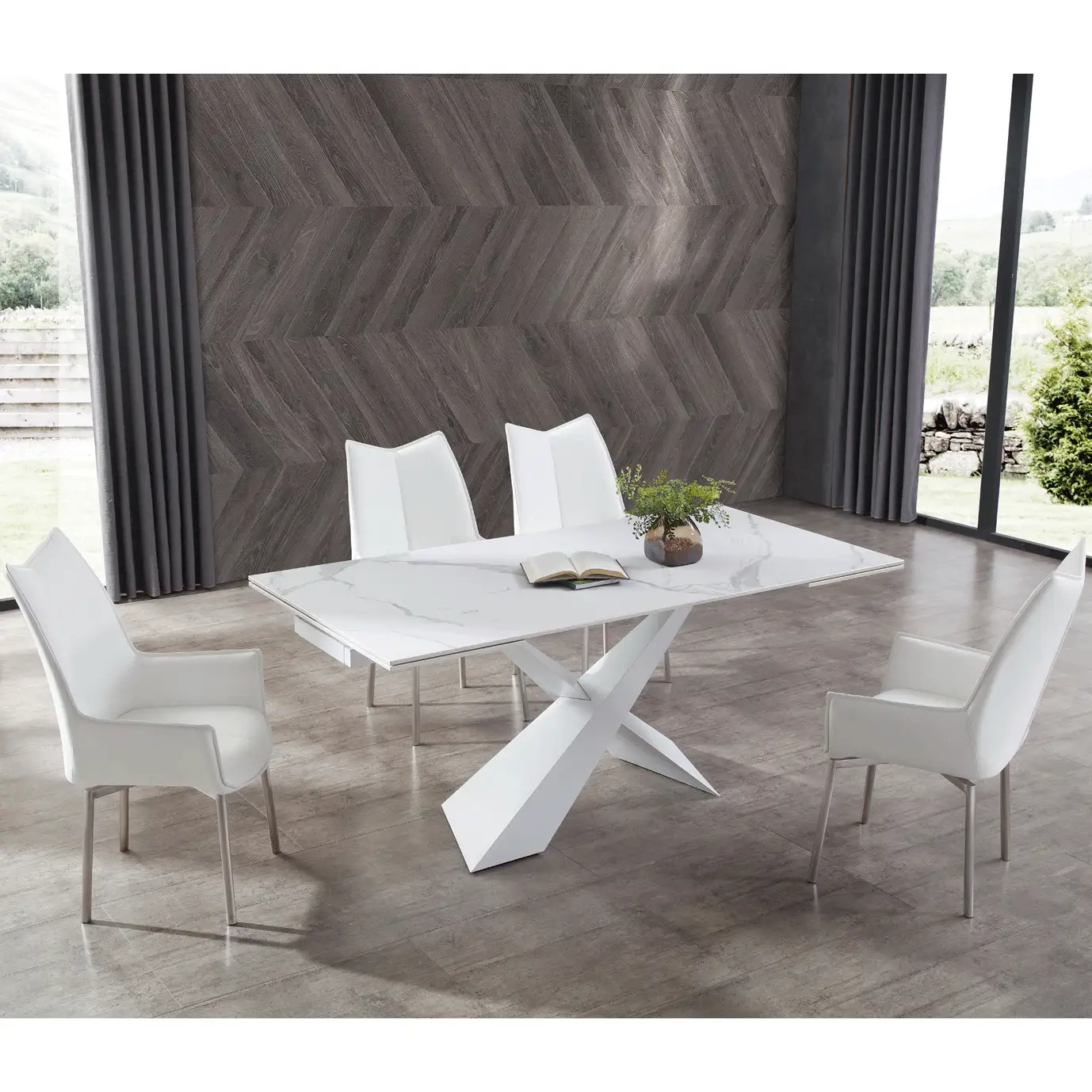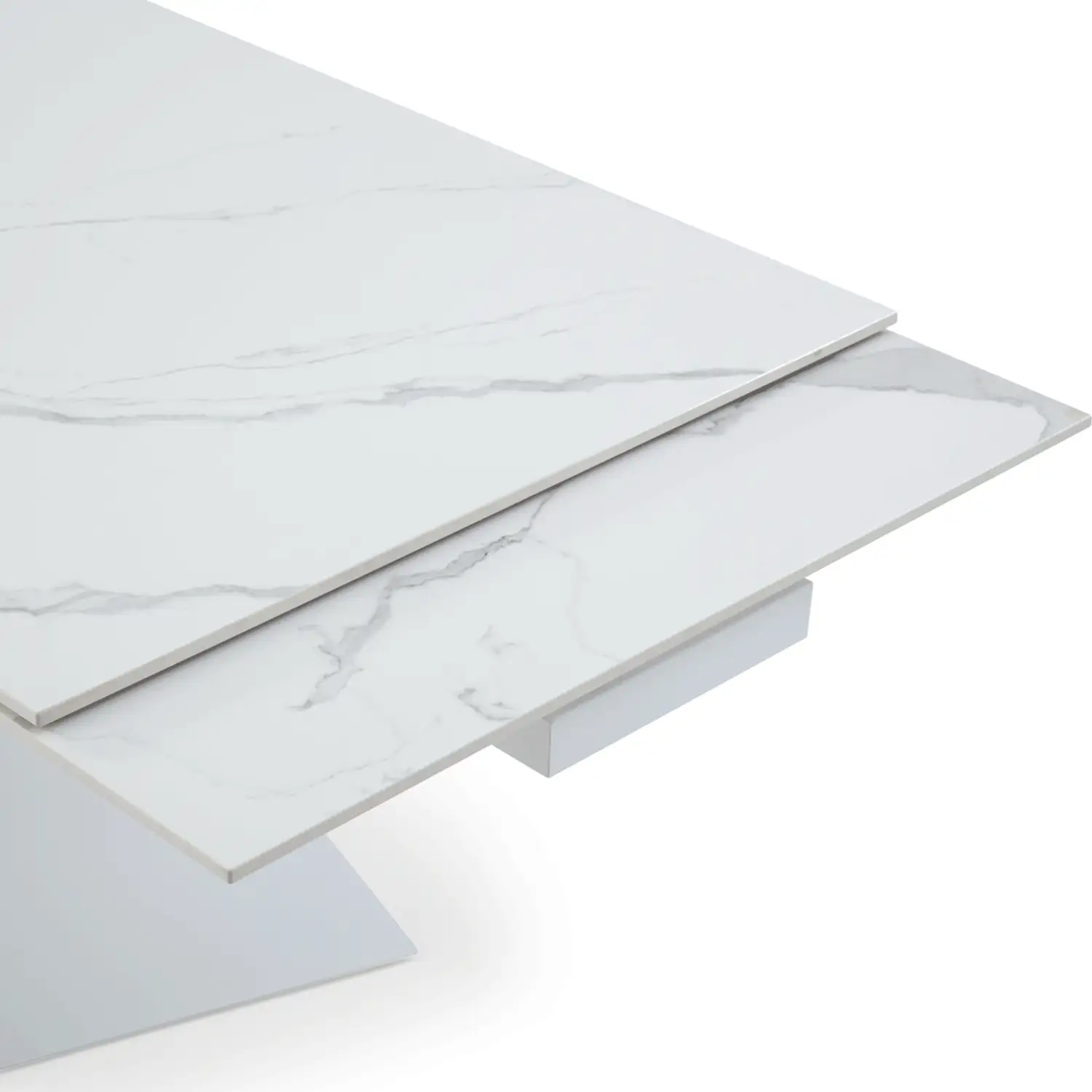 Extravaganza Collection 9113 71" Extention Dining Table in White Marble Look Ceramic & White Metal