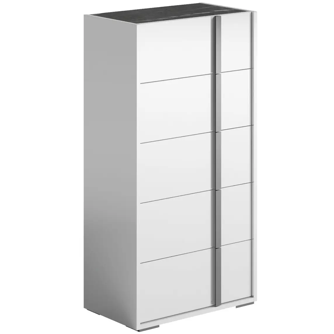 ESF Furniture Bianca 5 Drawer Chest in White & Dark Grey Marble Color Finish