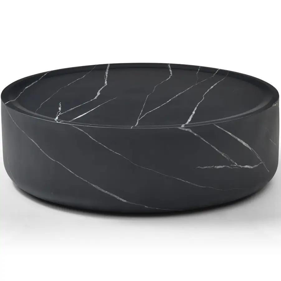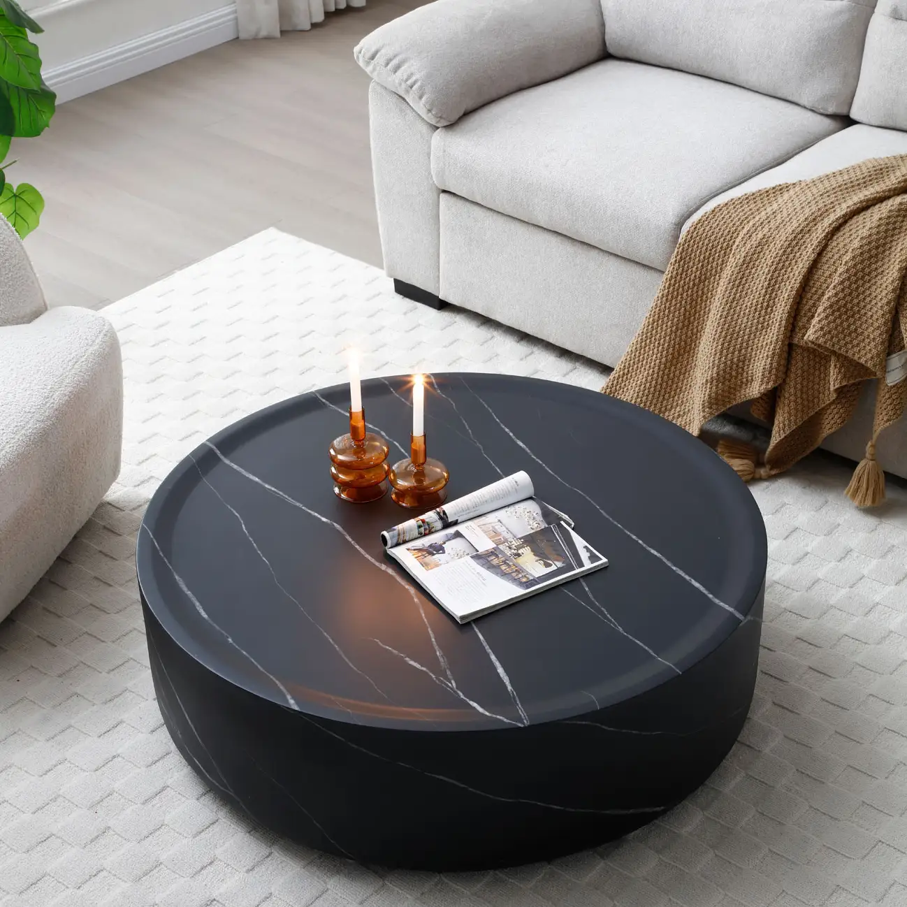 Extravaganza Collection 6155CTBLACK 6155 Round Coffee Table in Black Marble Look Fiberglass