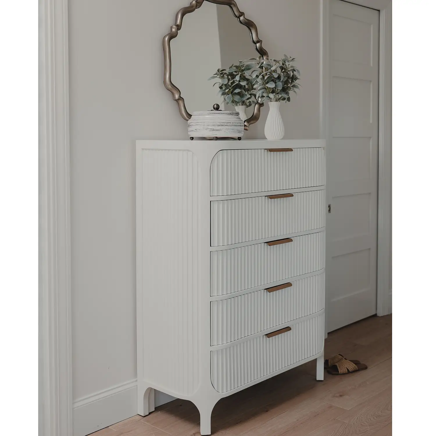 Finn & Louise Genevie Reed 5 Drawer Chest in Pristine White Finish