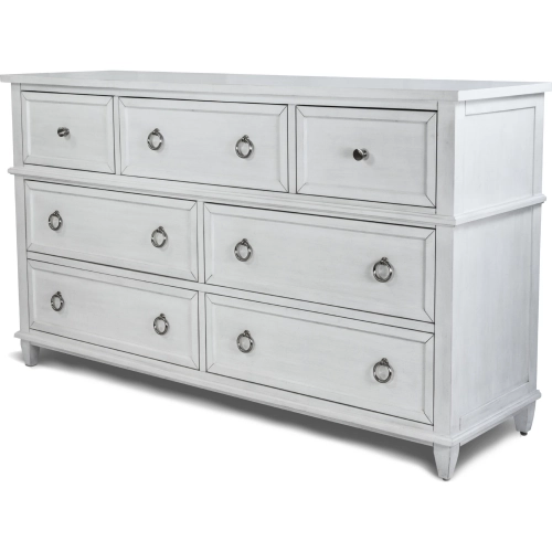 Finn & Louise FL-B65036-FRESHWHITE Point Breeze 7 Drawer Dresser Grey Glazed Fresh White Wood