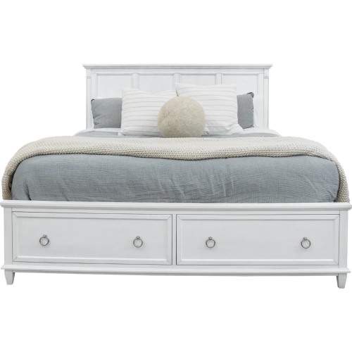 Finn & Louise FL-B650QBED-STORAGE-FRESHWHITE Point Breeze Queen Storage Bed Grey Glazed Fresh White Wood