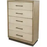 • Solid white oak with a soft woven rayon fabric wrap on the drawers in Muted Earth Tones & Clay Finish