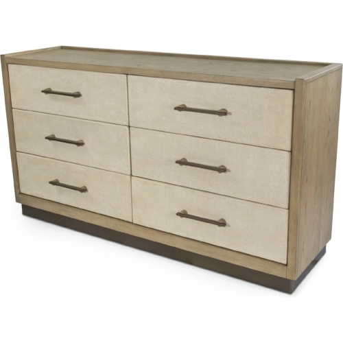 Finn & Louise FL-B70036-EARTHCLAY Rio Vista 6 Drawer Dresser Tan Brown Wood Neutral Fabric Weave Metal