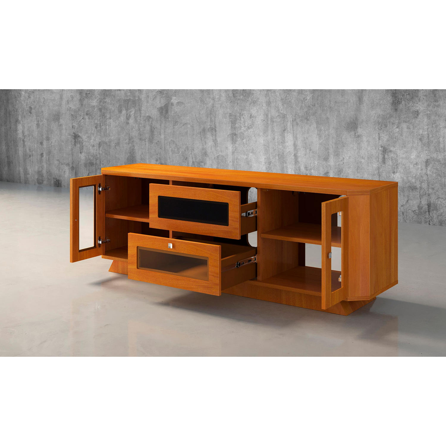 Consoles range in usable width from 60" to 76" and include such features as media storage drawers, internal wire management, center channel speaker compartments, adjustable equipment shelves and vented back panels.