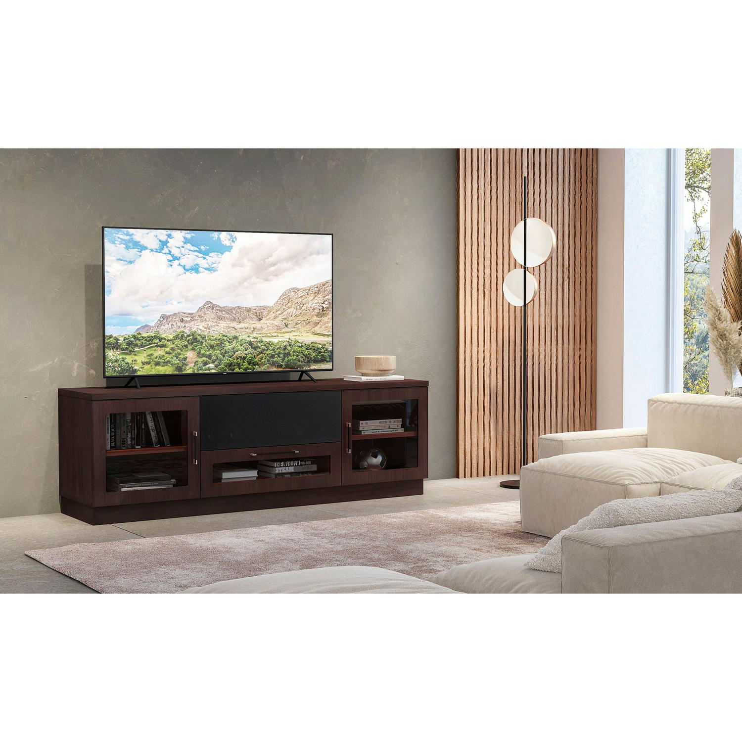 Furnitech 70" TV Stand Contemporary Media Cabinet with Center Speaker Opening in Wenge