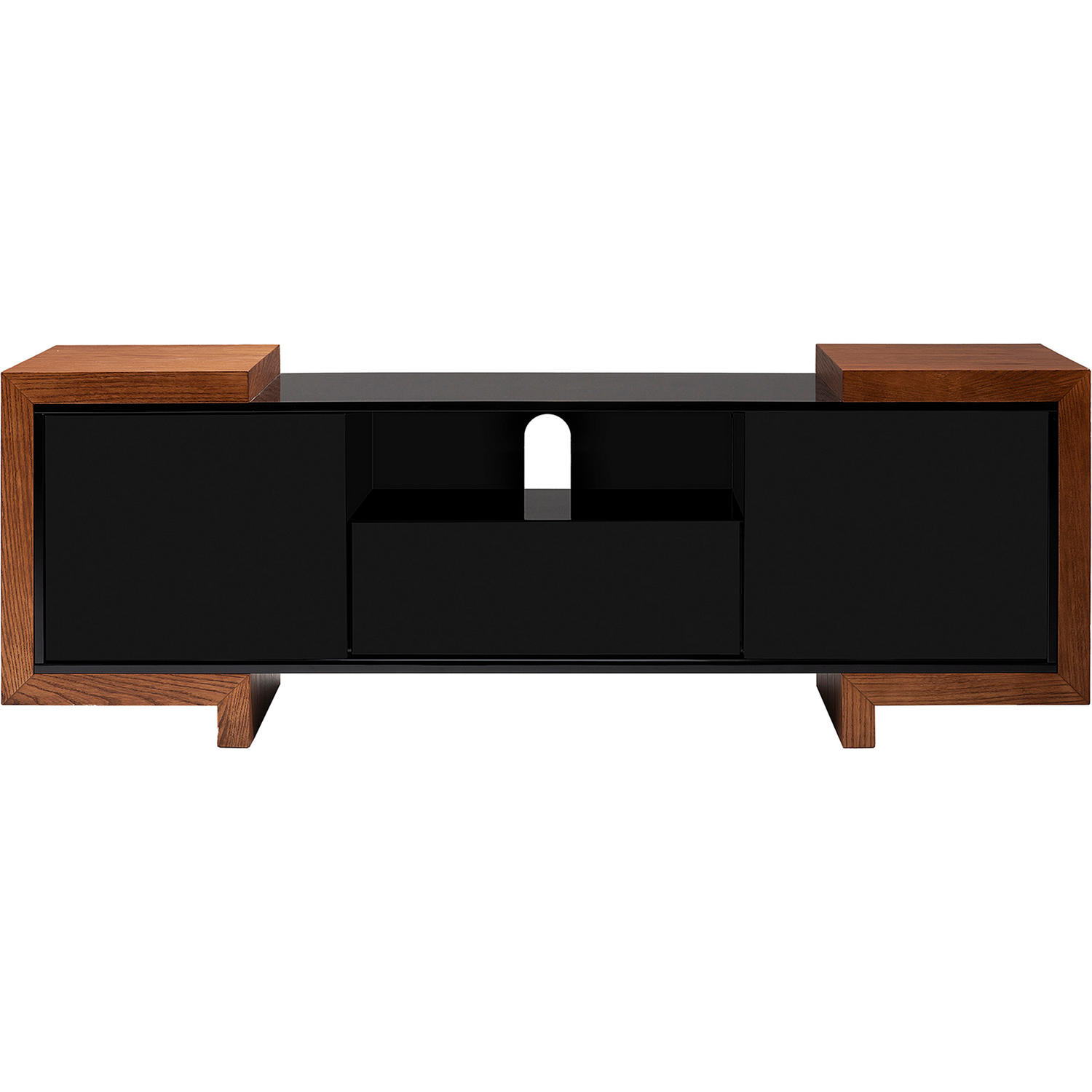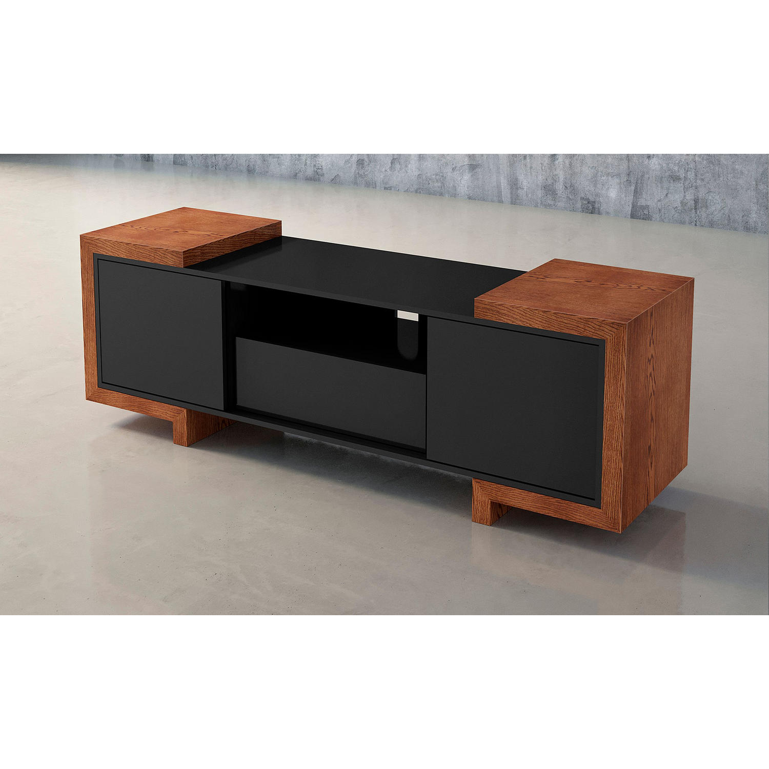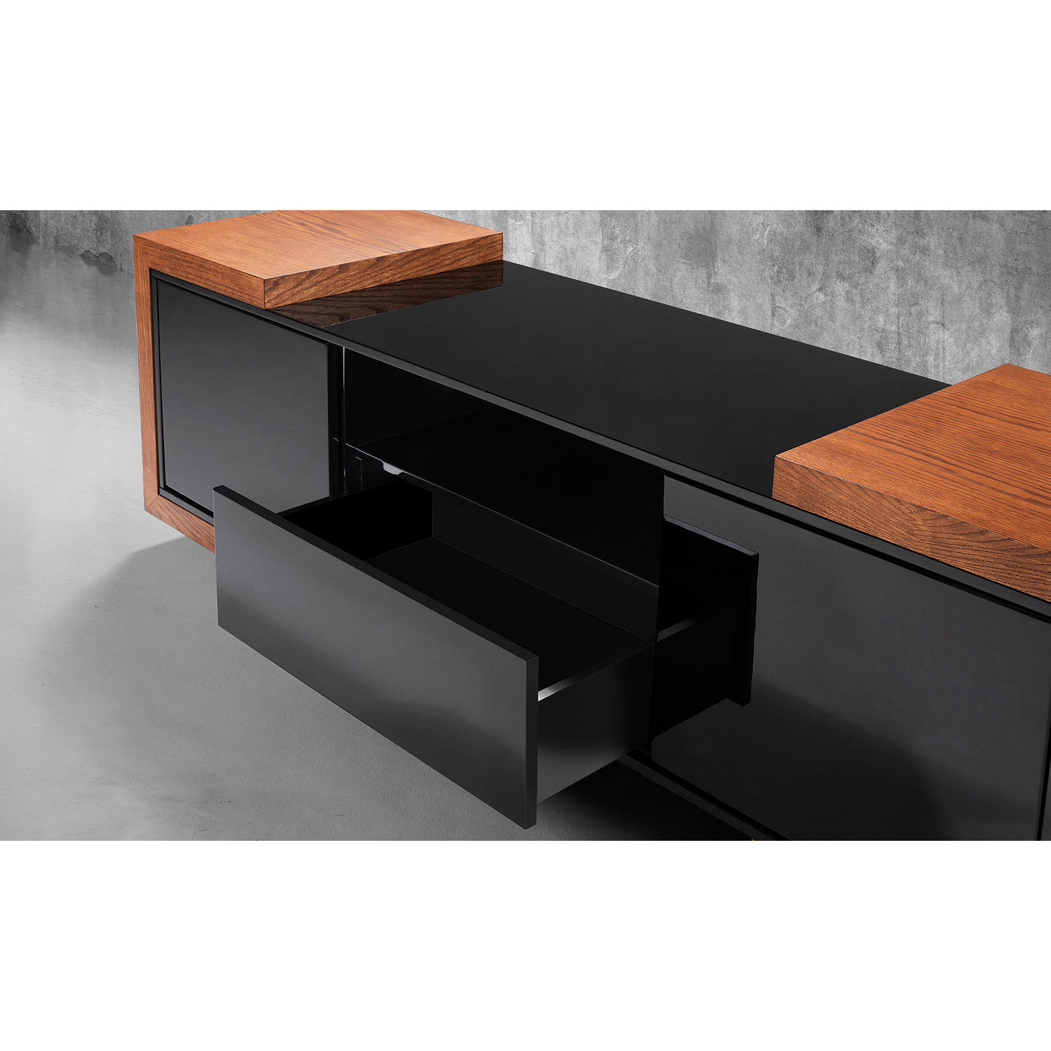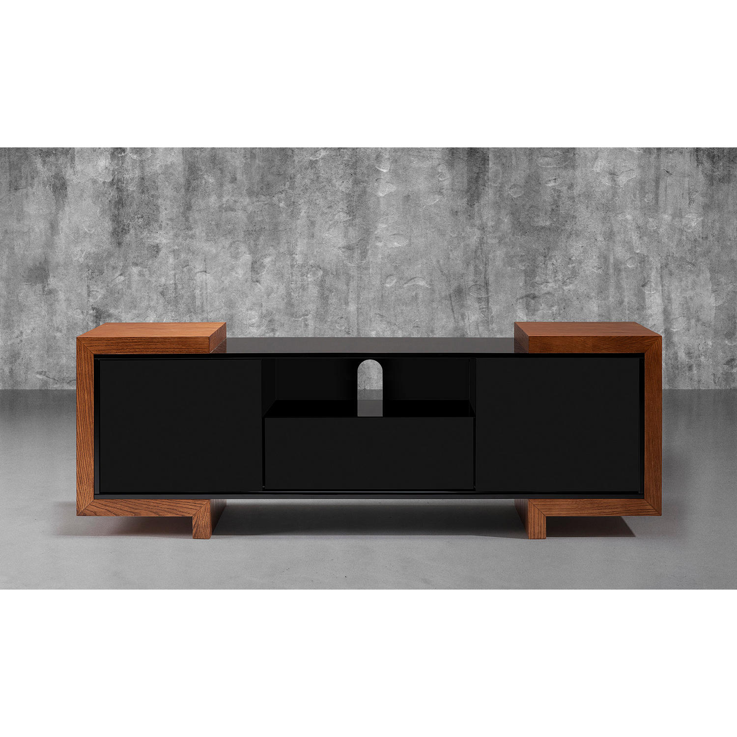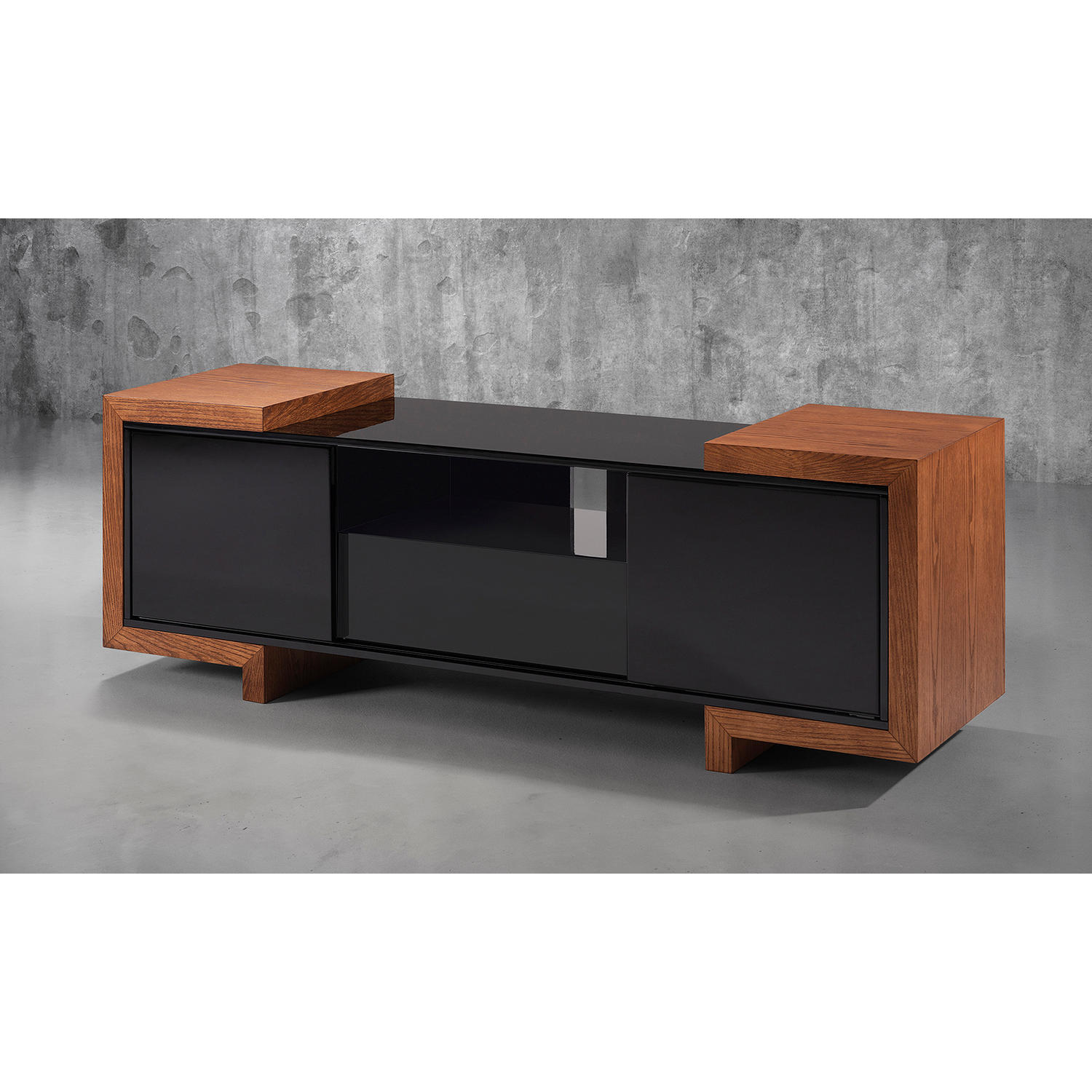Furnitech FT75FA 75 Inch TV Stand Contemporary High Gloss Black Lacquer & Oak