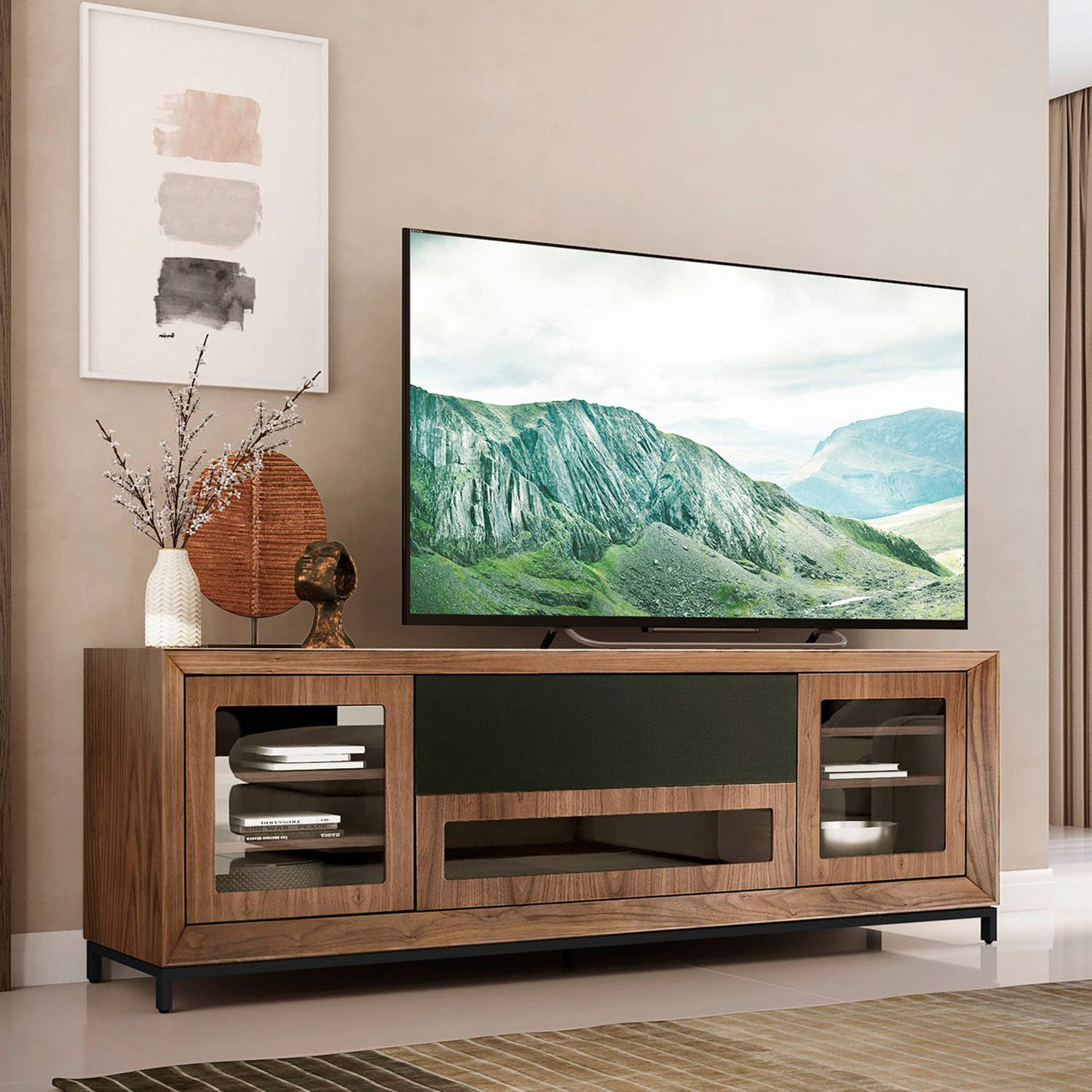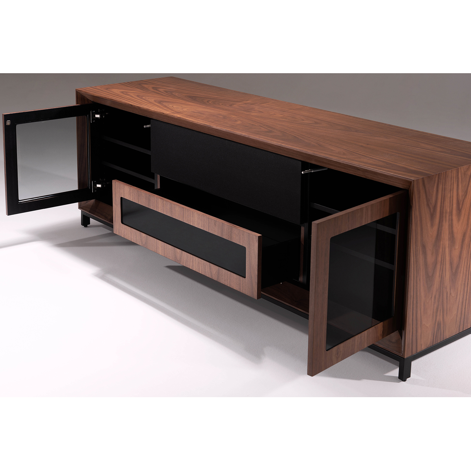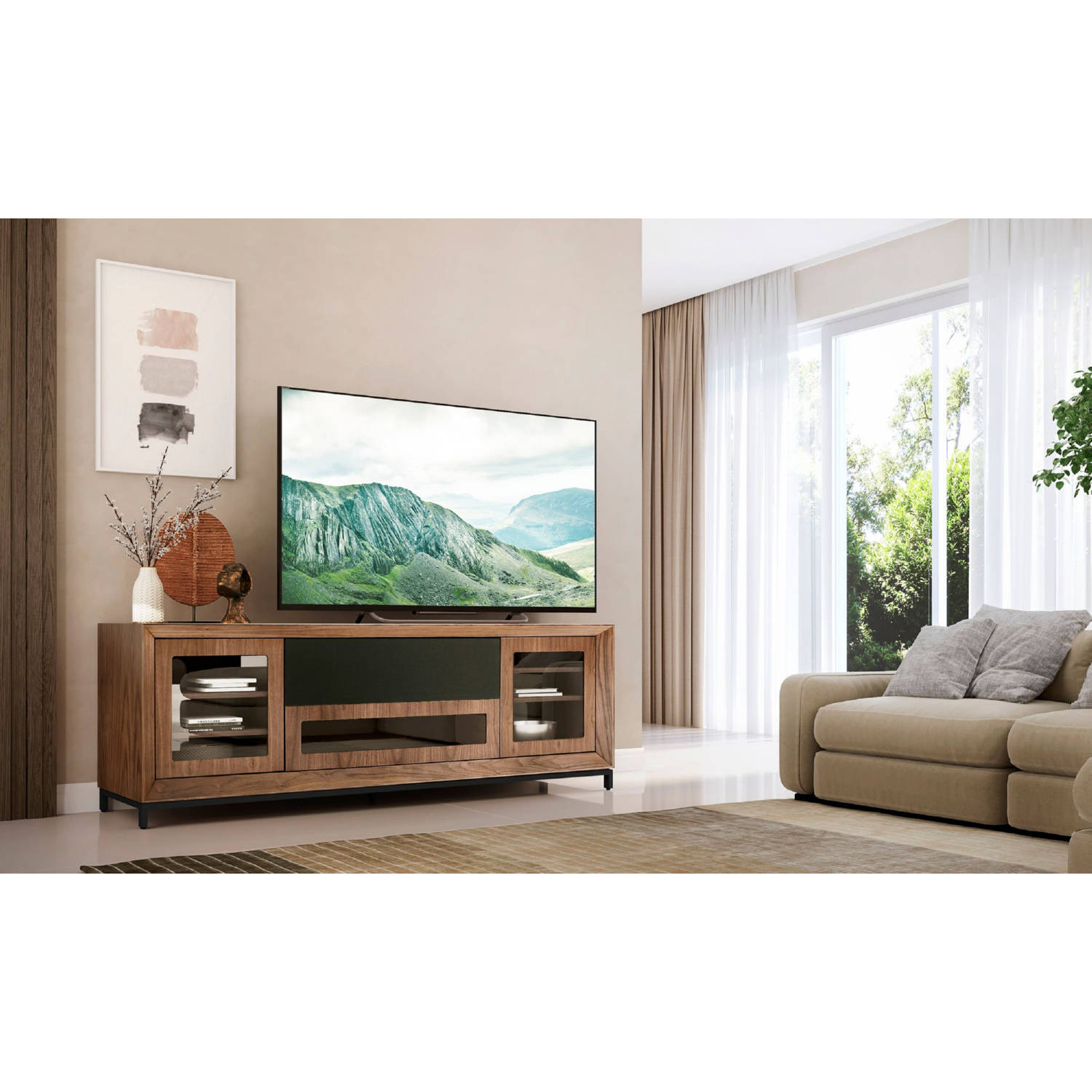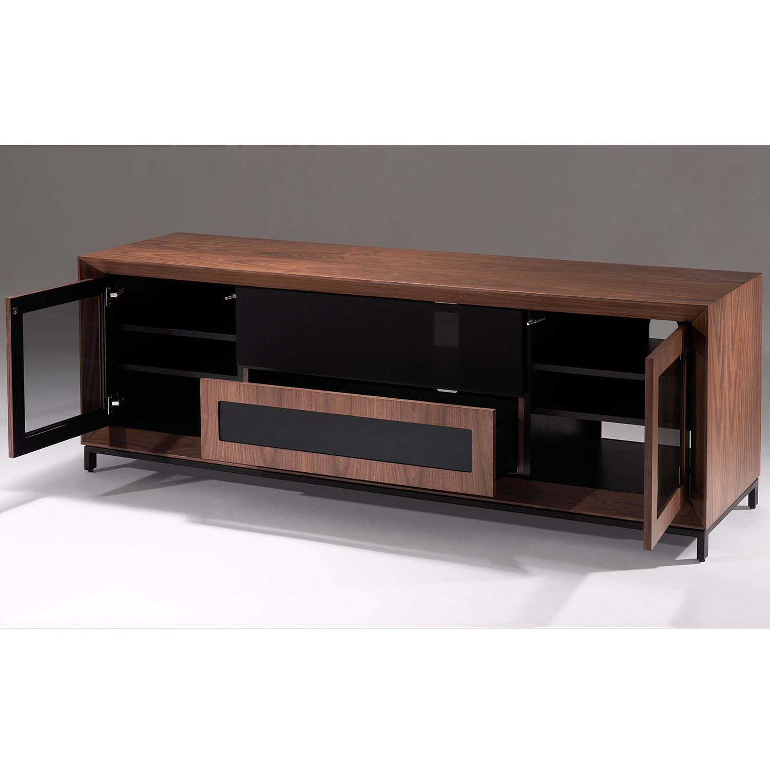Furnitech FT78CGWB 78" Contemporary TV Stand in Walnut Black Steel Tempered Glass