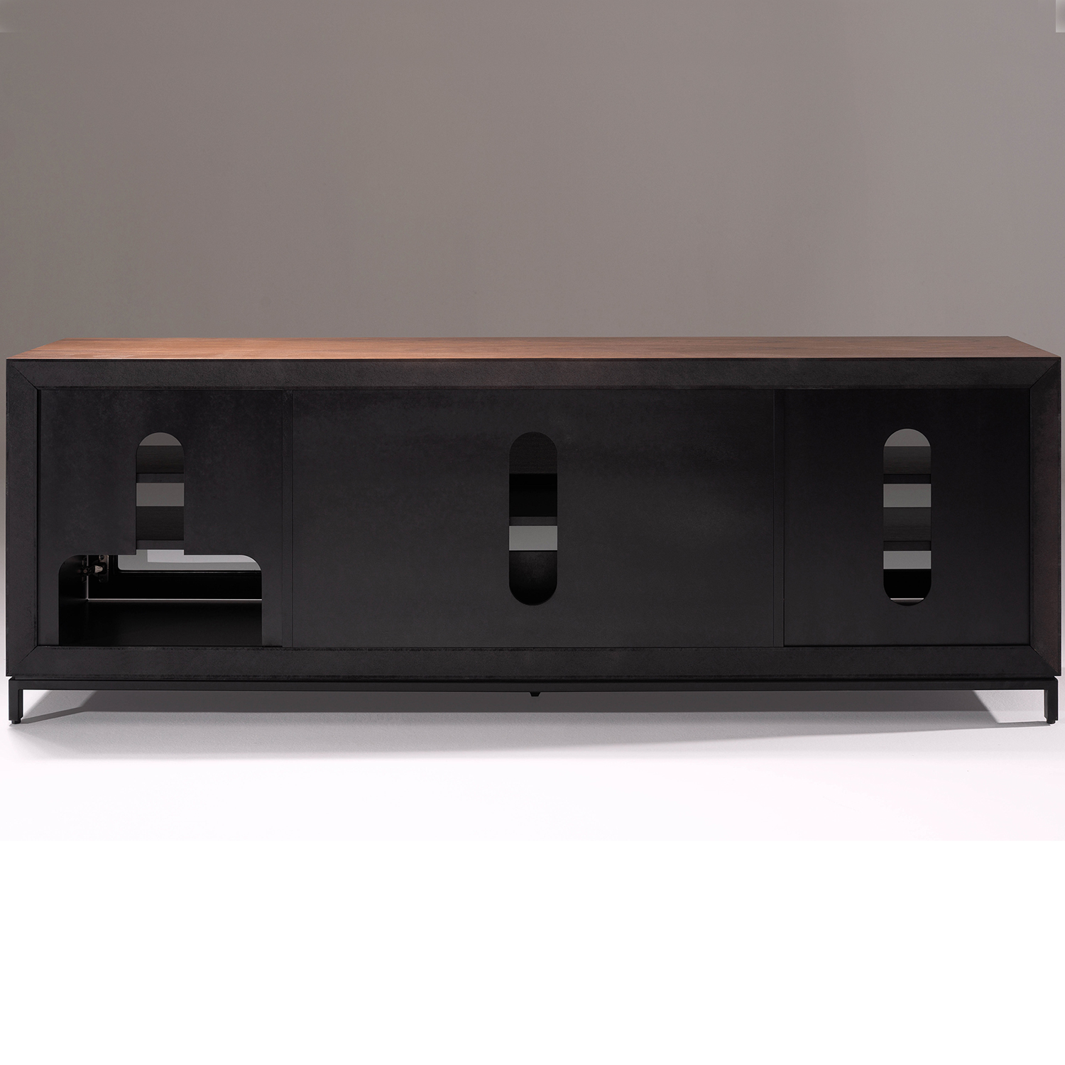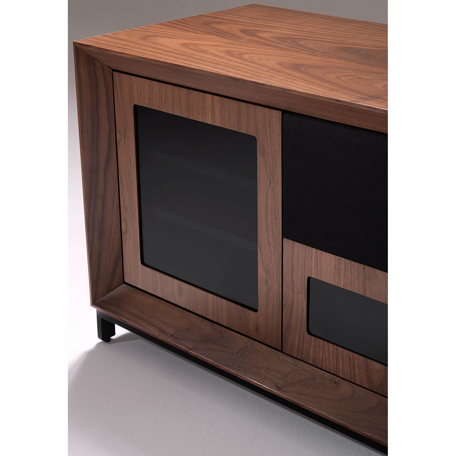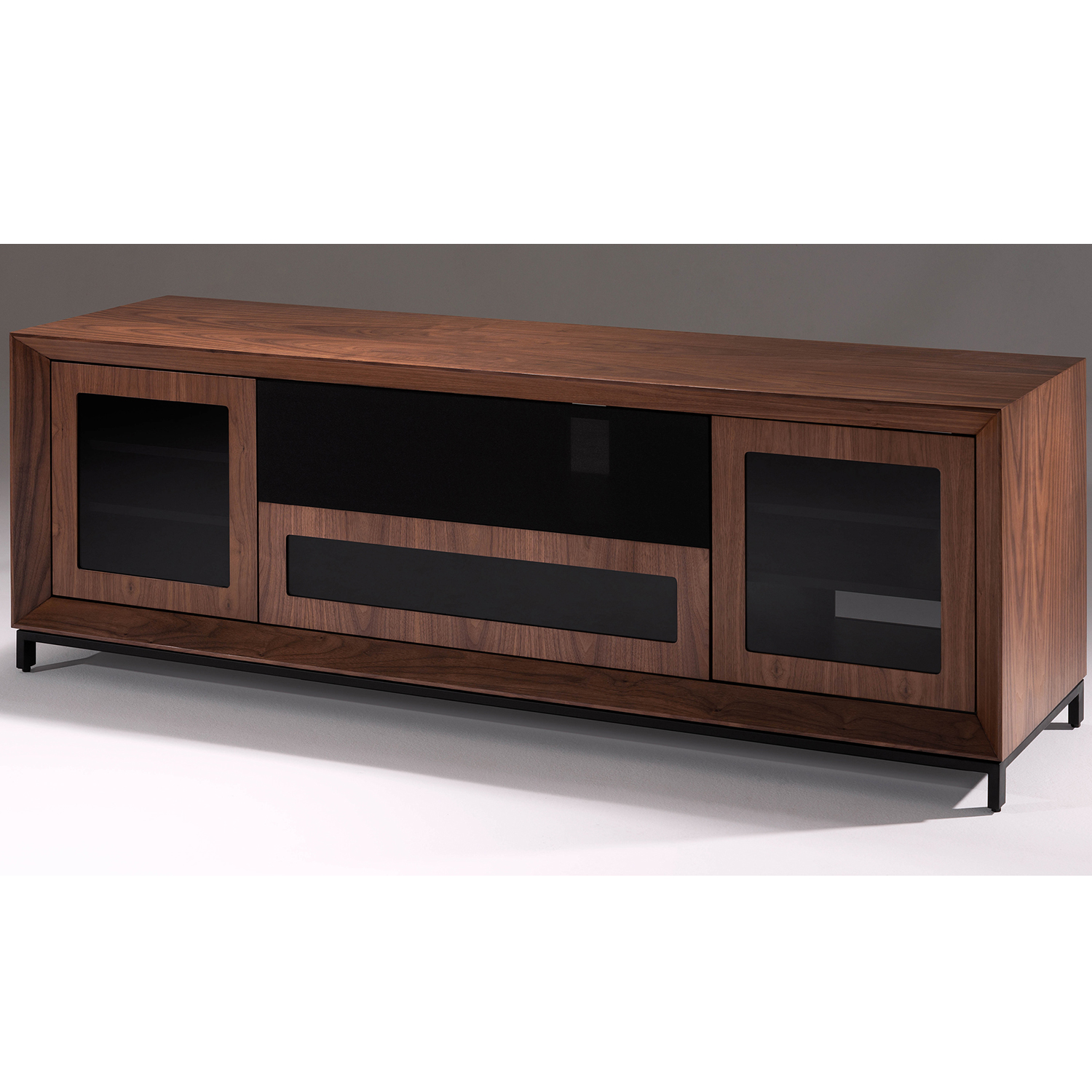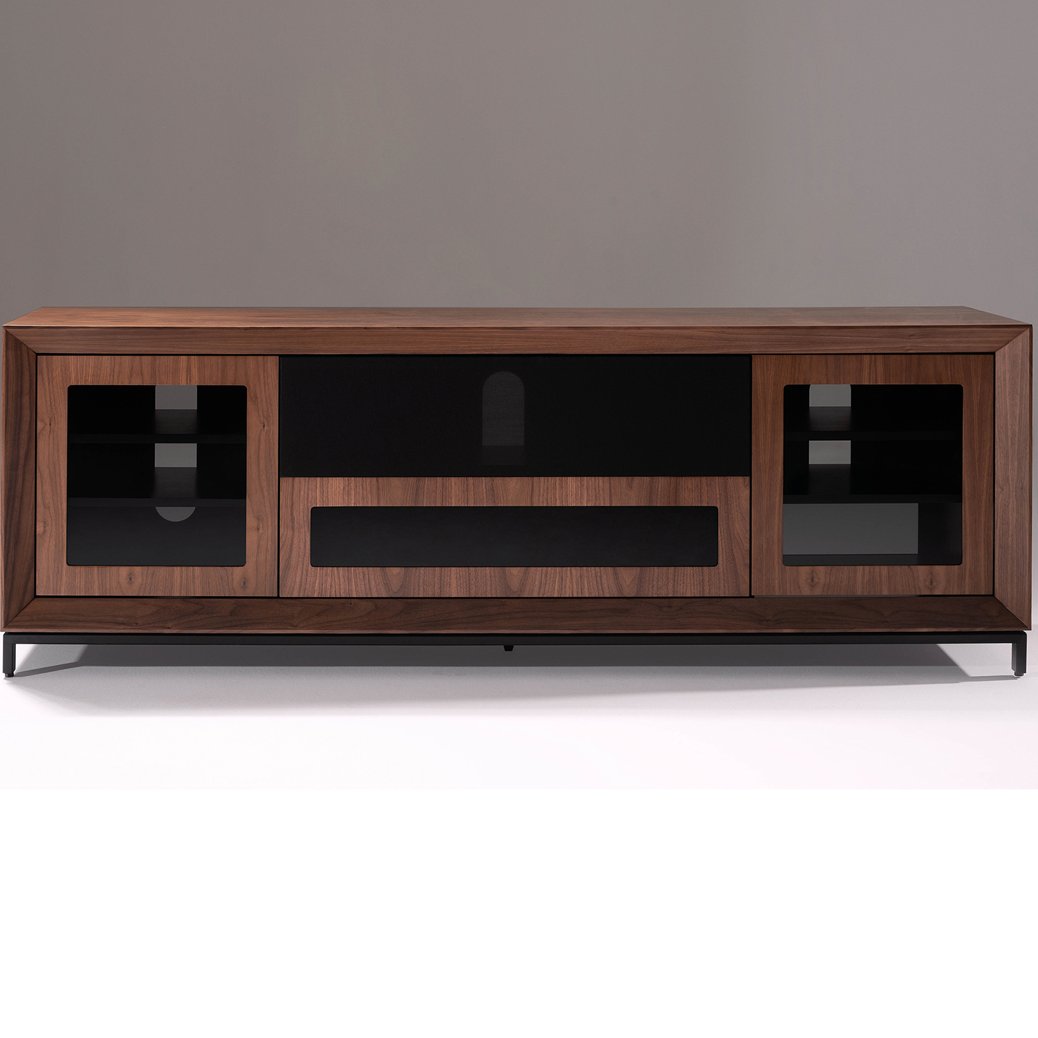 Furnitech FT78CGWB 78" Contemporary TV Stand in Walnut Black Steel Tempered Glass