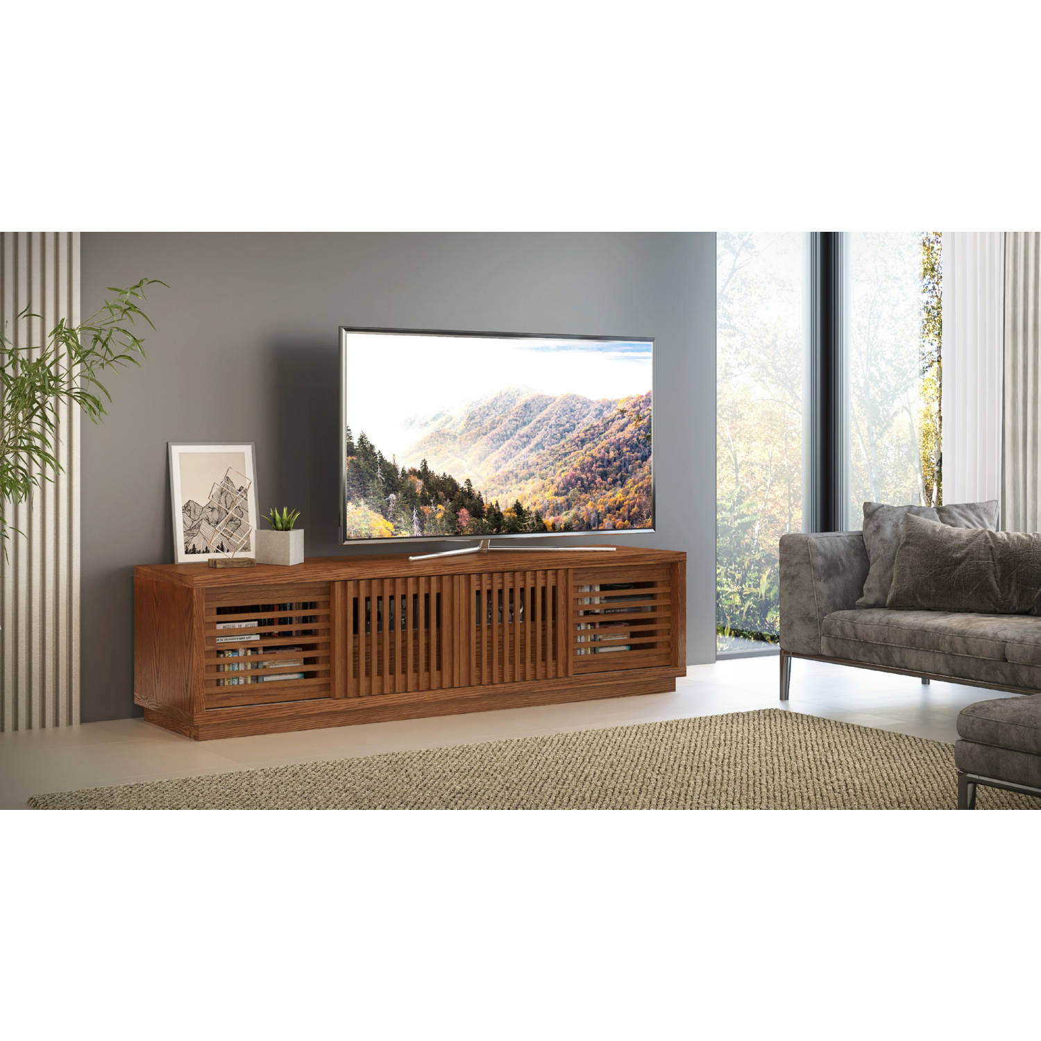 Furnitech 82" TV Stand Contemporary Media Cabinet in Warm Honey Finish