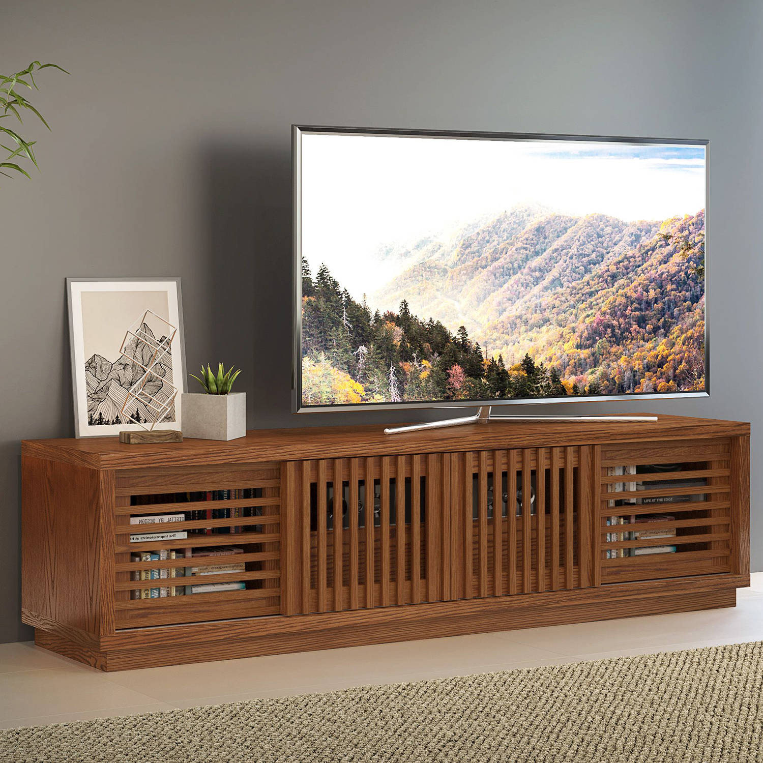 Furnitech FT82WS 82 Inch TV Stand Contemporary Rustic White Oak Warm Honey Finish