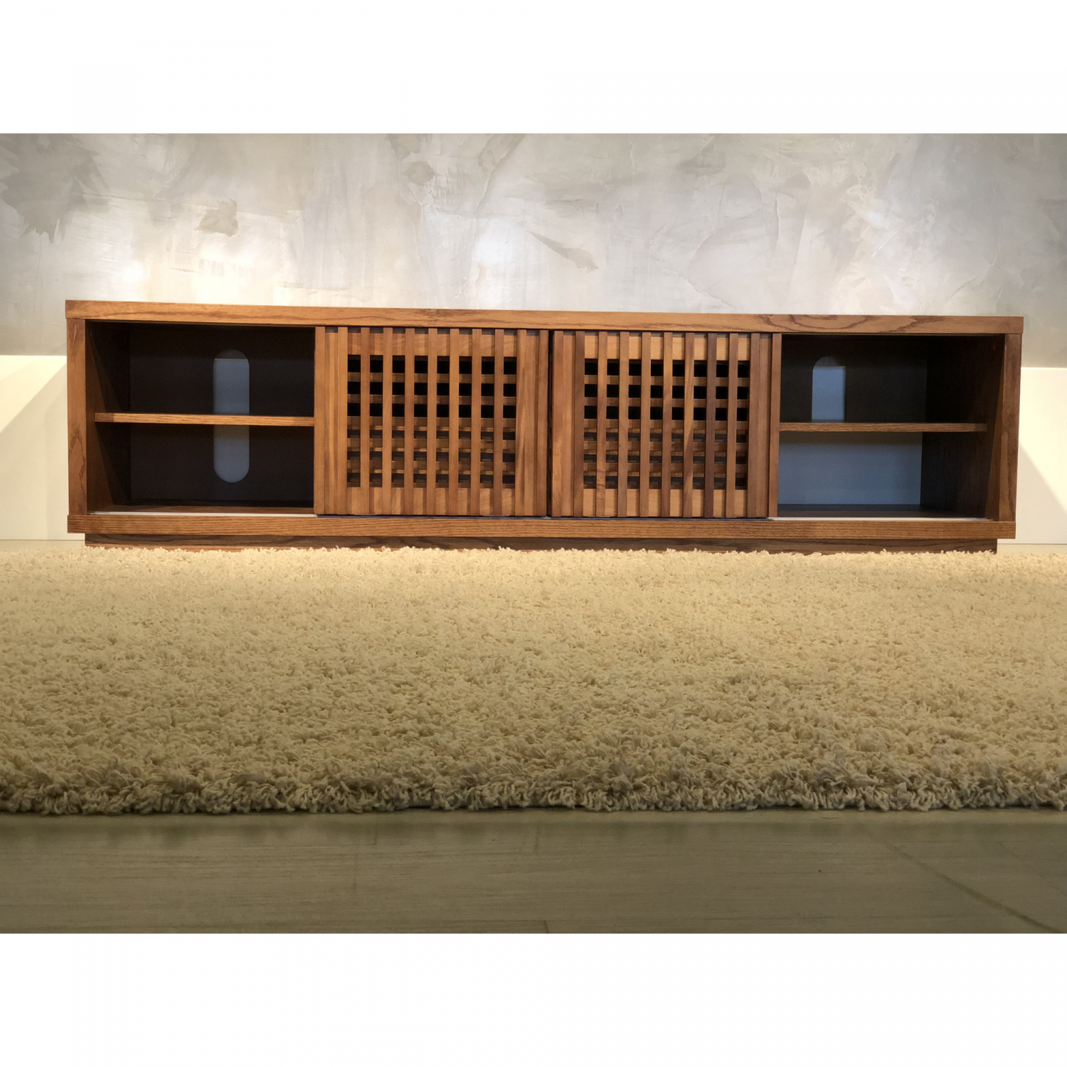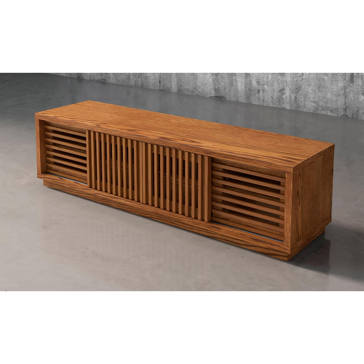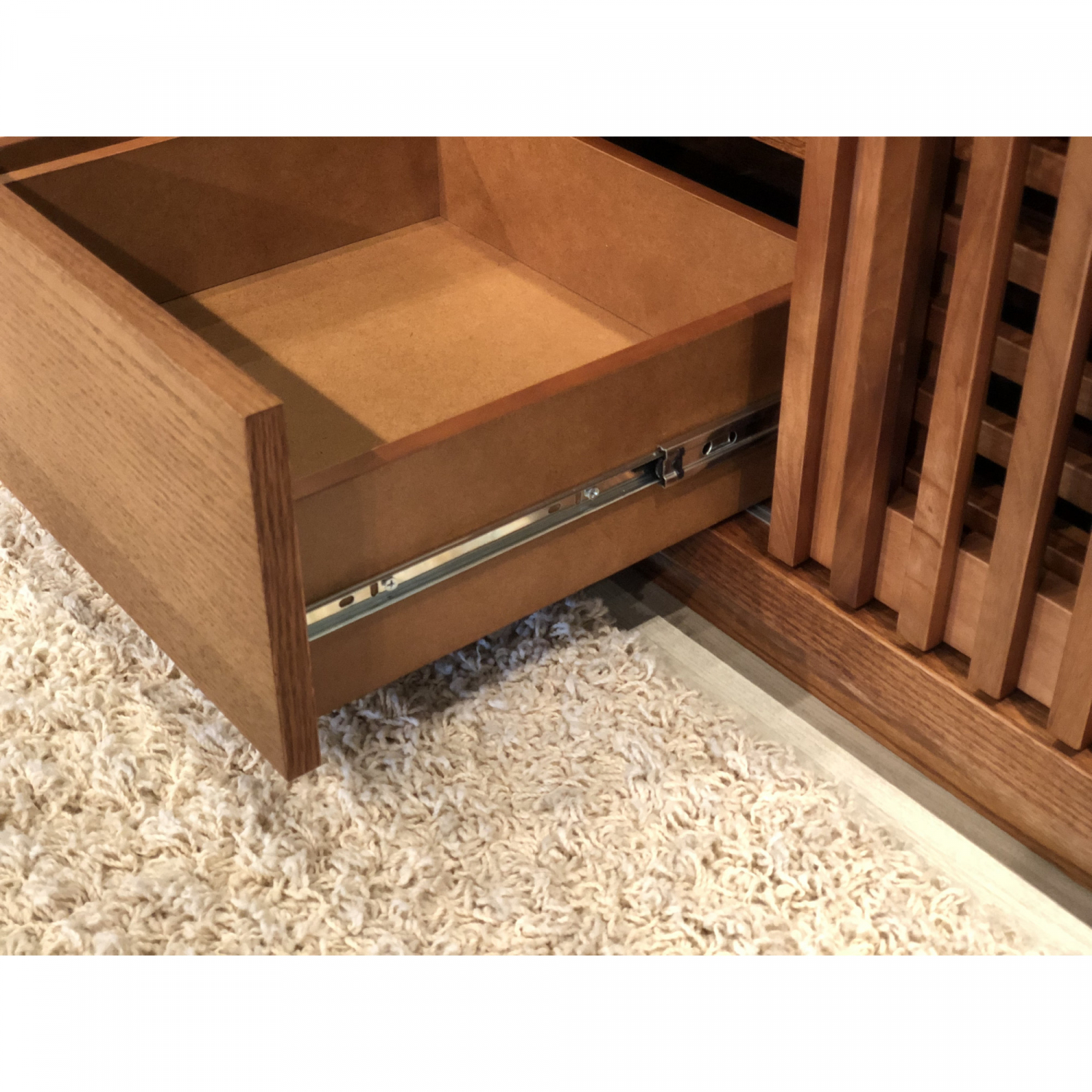 • 4 Solid Wood Slatted Sliding Doors that Conceal 4 Equipment Compartments