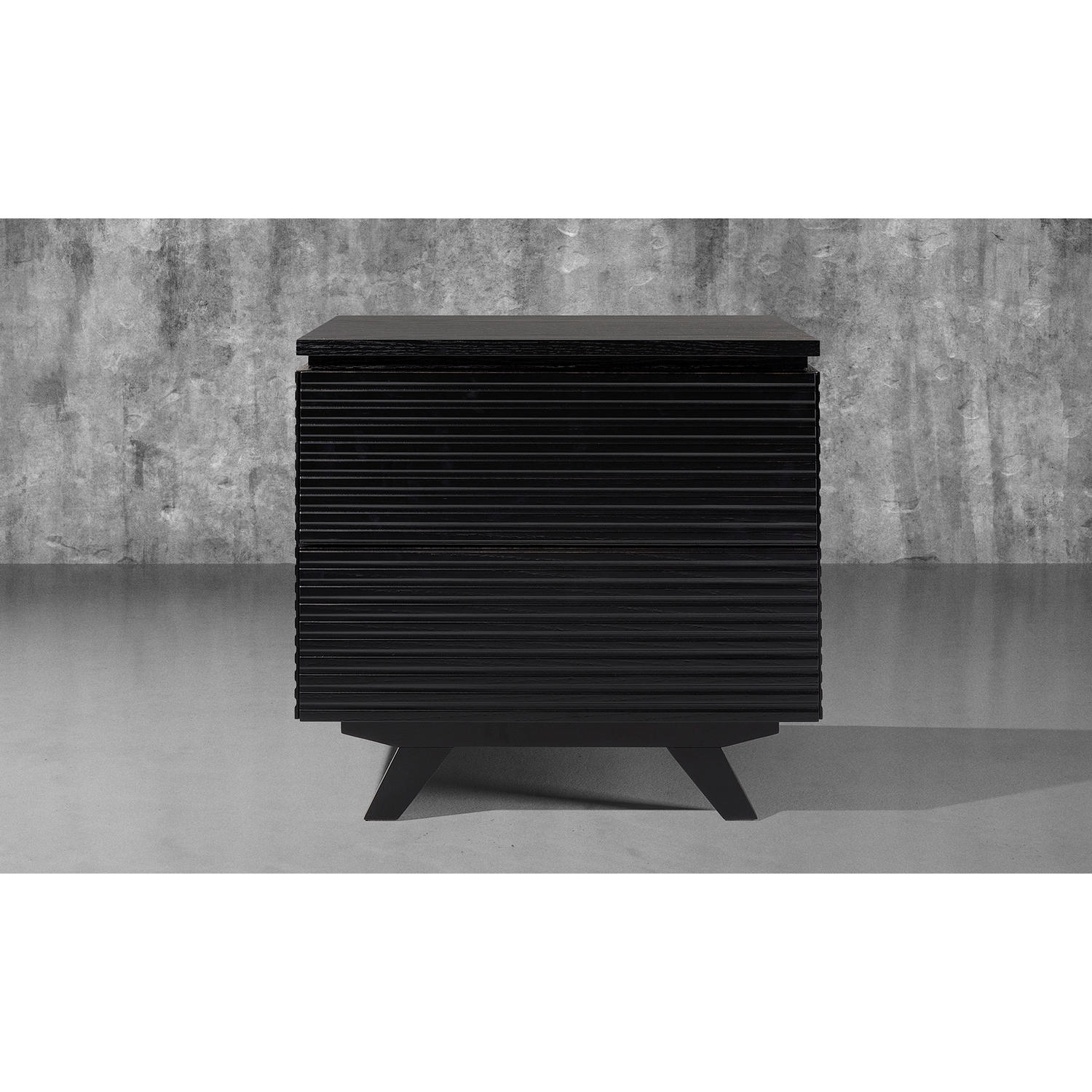 • Solid cherry wood base with flared tapered legs and matte black finish